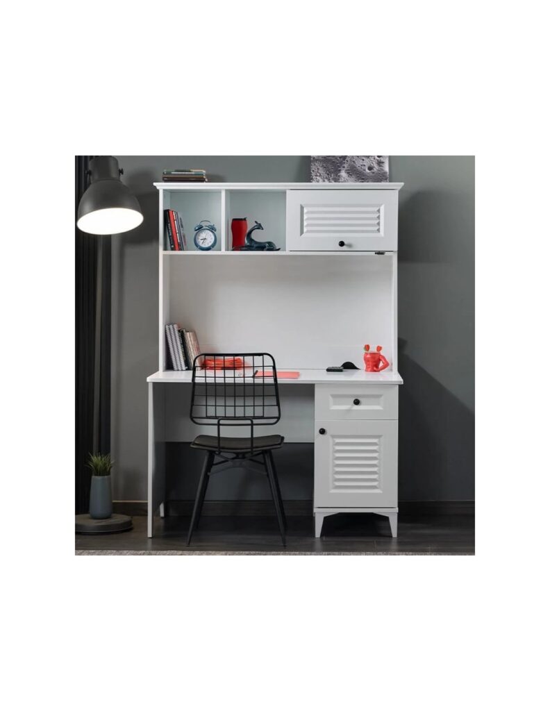 Στην κορυφή του γραφείου υπάρχει ένας πρακτικός χώρος οργάνωσης με ειδικές θήκες για μολύβια, στυλό ή άλλα μικροαντικείμενα, διευκολύνοντας την τακτοποίηση. Ένα πολυλειτουργικό και αισθητικά ευχάριστο έπιπλο που συνδυάζει εργονομία και στυλ, κατάλληλο για κάθε παιδικό δωμάτιο.