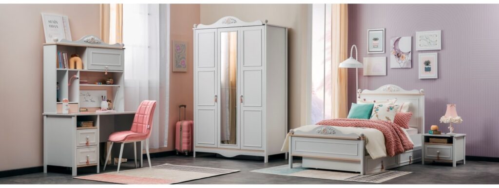 Η ντουλάπα Juliet είναι μια κομψή και λειτουργική επιλογή για παιδικά και εφηβικά δωμάτια, που συνδυάζει ρομαντική αισθητική και πρακτικότητα. Ο σχεδιασμός της, με απαλούς τόνους λευκού και γκρι, διακριτικά μοτίβα και λαβές σε σχήμα καρδιάς, δημιουργεί μια ζεστή και φιλόξενη ατμόσφαιρα.