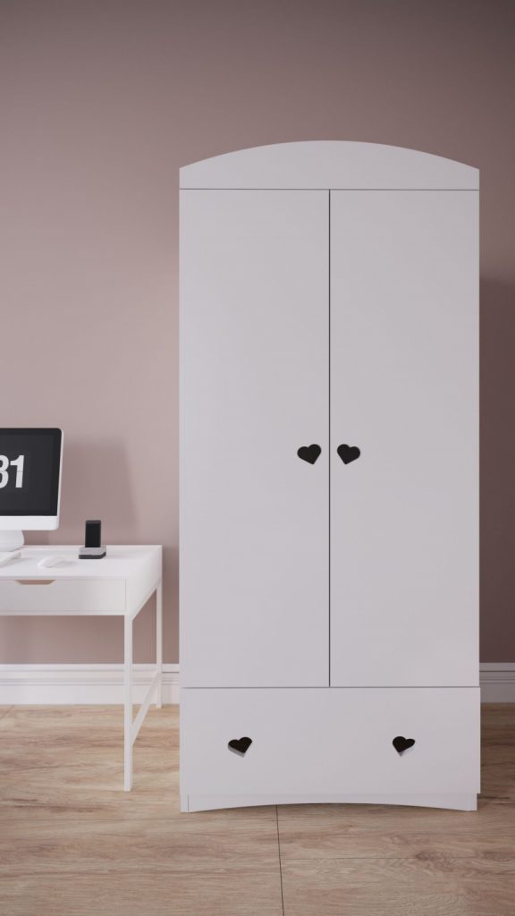 Δίφυλλη ντουλάπα Pauline Oak Η συλλογή Pauline είναι ιδανική πρόταση για όσους αγαπούν τα κομψά έπιπλα και ακολουθούν τις τάσεις που επικρατούν. Τα ουδέτερα χρώματα κάνουν όλο το σετ να ταιριάζει εξίσου στο δωμάτιο ενός κοριτσιού και ενός αγοριού. Άνετη και καλαίσθητη η βρεφική ντουλάπα Pauline Oak διαθέτει: Τρία ράφια Δύο ράγες Δύο συρτάρια Χρώμα: γκρι – φυσικό ξύλο Διαστάσεις: 80 x 52 x 183 εκ.
