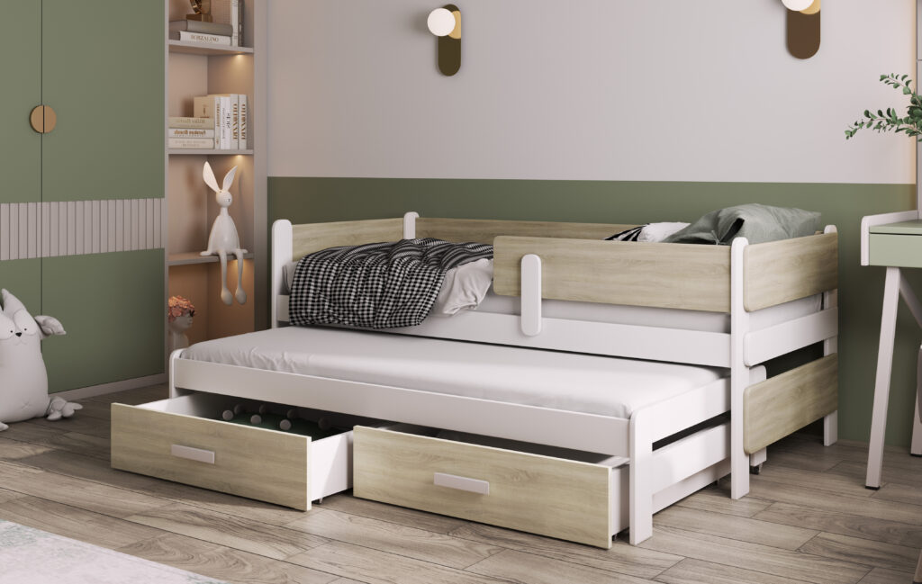 Το Calmo είναι το απόλυτο παιδικό κρεβάτι που συνδυάζει αισθητική, λειτουργικότητα και ανθεκτικότητα. Κατασκευασμένο από 100% μασίφ ξύλο πεύκου, προσφέρει ένα φυσικό και ζεστό περιβάλλον ύπνου, ενώ η στιβαρή του δομή εξασφαλίζει αντοχή για χρόνια! ✅ Ευρύχωρα συρτάρια αποθήκευσης με οδηγούς: Ιδανικά για παιχνίδια, κλινοσκεπάσματα ή οτιδήποτε χρειάζεστε για ένα τακτοποιημένο παιδικό δωμάτιο. ✅ Χρηστικότητα: Συρόμενο κρεβάτι με οδηγούς που είναι η τέλεια λύση για φιλοξενία και εξοικονόμηση χώρου. Το Calmo δεν είναι απλώς ένα κρεβάτι – είναι ένα λειτουργικό και κομψό έπιπλο που θα μετατρέψει το παιδικό δωμάτιο σε έναν ονειρικό χώρο! ✔ Διαθέσιμο σε 2 διαφορετικά χρώματα