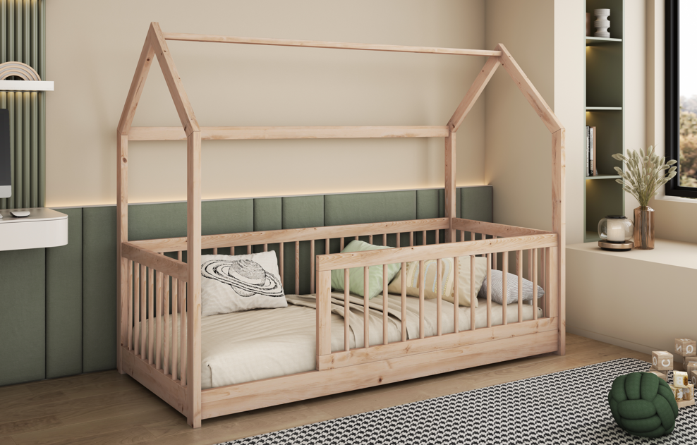 Tipi Plus with fence rail παιδικό κρεβάτι φυσικό ξύλο μασίφ με συρτάρι / δεύτερο κρεβάτι