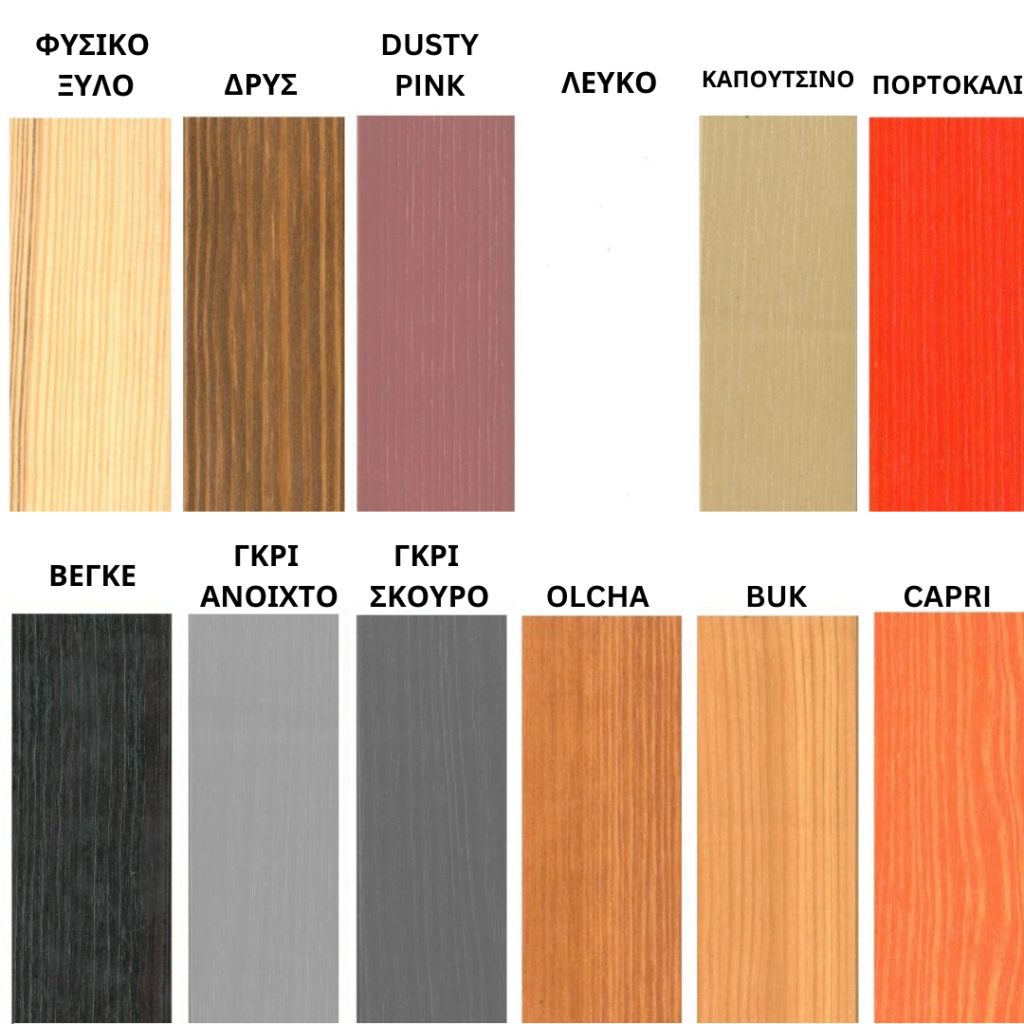 - Χρώμα: Φυσικό (ημι-ματ φινίρισμα) / Λευκό / Γκρι / Γραφίτης / Olive