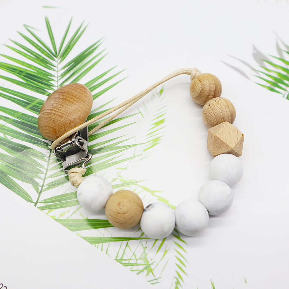 Οι ξύλινες χάντρες από τις οποίες αποτελούνται είναι φυσικές και φιλικές προς το περιβάλλον. Το κούμπωμα δεν περιέχει μόλυβδο και πιάνεται εύκολα στα ρούχα κρατώντας την πιπίλα μακριά από το πάτωμα!