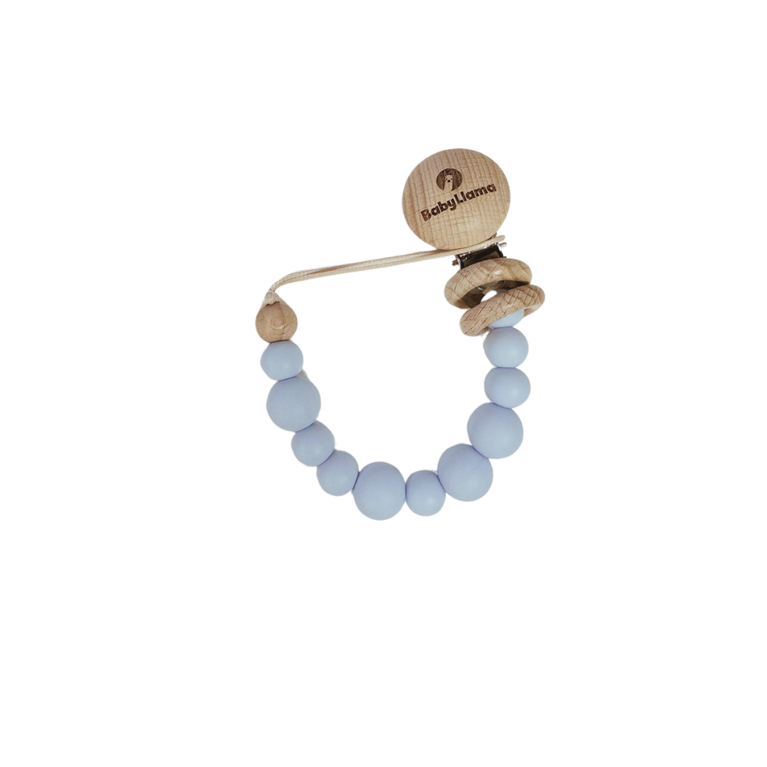 Το κλιπ πιπίλας ΒabyLlama διαθέτει διαφορετικού χρώματος χάντρες σιλικόνης που χρησιμοποιούνται και σαν μασητικό. Tο μωράκι σας χρησιμοποιεί με ασφάλεια όλο το κλιπ πιπίλας και σαν μασητικό ανακουφίζοντας έτσι τα πονεμένα ούλα του.
