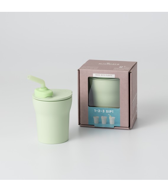 To ποτηράκι Sip 1-2-3 είναι κατασκευασμένο από 100% φυτικής προελευσης PLA και το καλαμάκι από σιλικόνη κατάλληλη για τρόφιμα έτσι ώστε να μην ερχεται σε επαφή με πλαστικά ή άλλα υλικά που μπορεί να περιέχουν επικίνδυνα για την υγεία του στοιχεία. Στην αρχή το παιδί σας μπορεί να πίνει από το καλαμάκι και όσο μεγαλώνει να εξασκηθεί πίνοντας από το στόμιο στο καπάκι και τελικά να κατακτήσει ένα πραγματικό ποτήρι μόνο του μιας και ειναι σταθερό σε αντίθεση με τα ποτηράκια σιλικόνης. Συσκευασία σε κουτί με παράθυρο