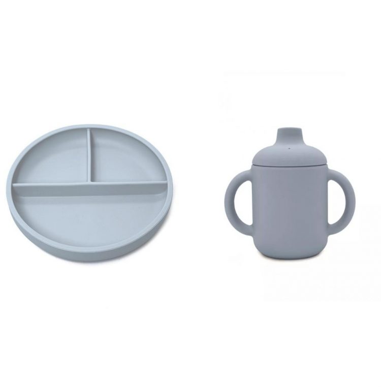Σετ Φαγητού Πιάτο με χωρίσματα + Ποτηράκι με χερούλια Dusty Blue