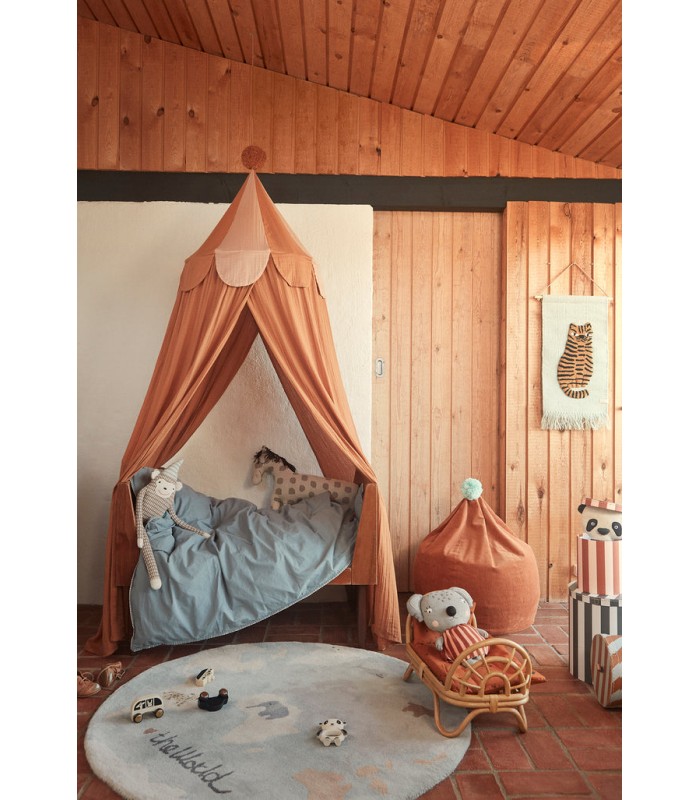 ‘Εχει πολλές λεπτές λεπτομέρειες όπως πομ πον, χαριτωμένα χρώματα και μπορεί να ανοίξει τόσο μπροστά όσο και πίσω. Αυτό το άνετο canopy είναι ιδανικό για κρυφτό ή για να κόψετε την ανάγνωση δυνατά ενός καλού βιβλίου. Το canopy είναι κατασκευασμένο από 100% οργανικό βαμβάκι – προδιαγραφών oekotex. Για τον καθαρισμό προτείνεται καθαρισμός spot. Χρώμα: Ροζ Υλικό: 100% Οργανικό Βαμβάκι Διαστάσεις: Ø60 x H240 εκ.