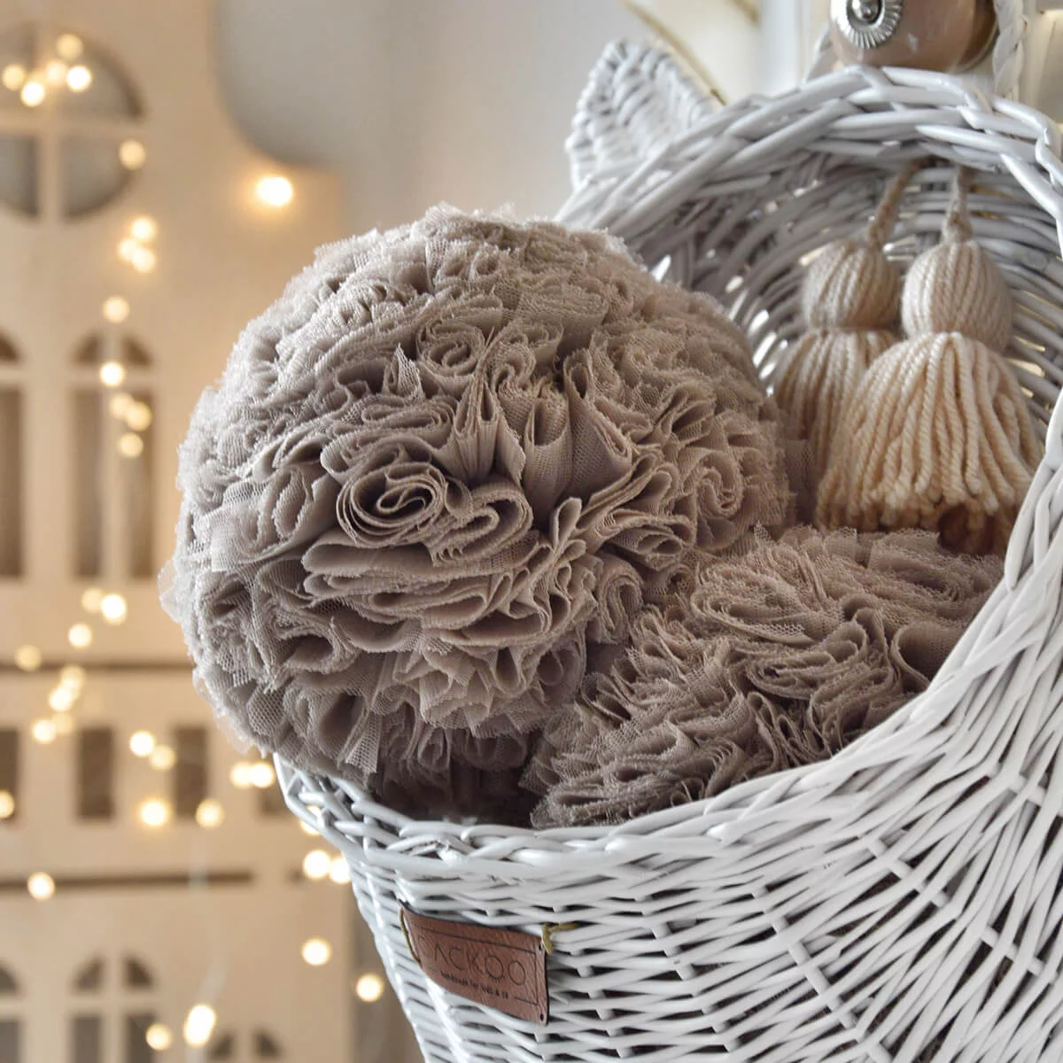 Χρησιμοποιήσαμε περίπου 20 μέτρα τούλι για να φτιάξουμε το canopy. Το Note Tulle προέρχεται από Πολωνό παραγωγό και είναι φτιαγμένο με τη μέγιστη προσοχή στην κάθε λεπτομέρεια.