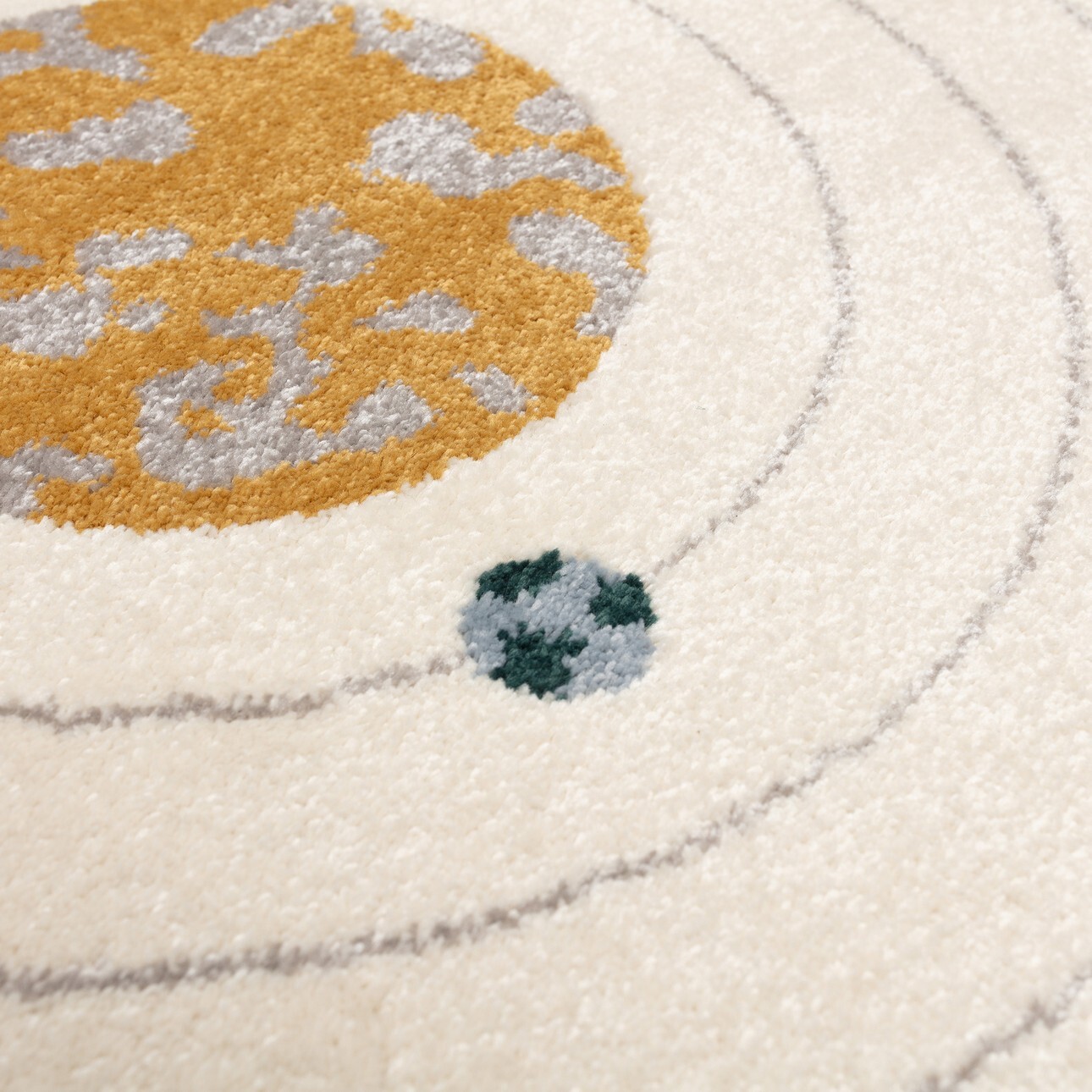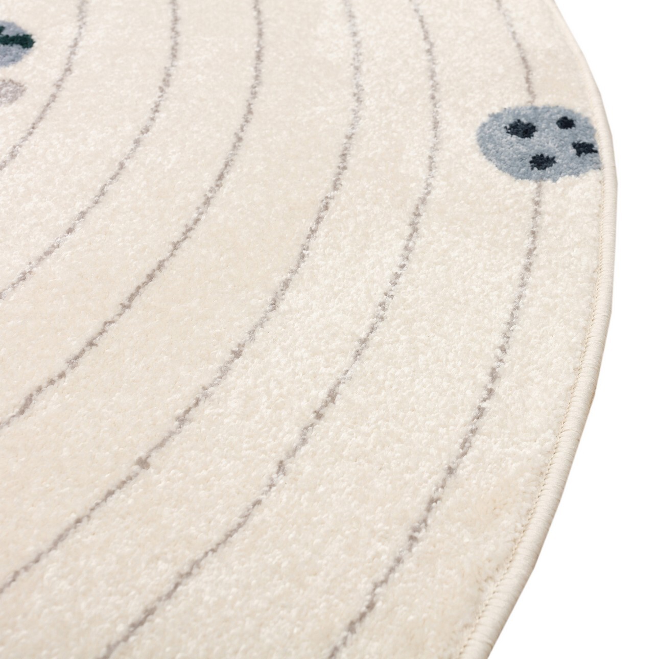 Στρογγυλό παιδικό χαλί με πρωτότυπο σχέδιο από πλανήτες.
