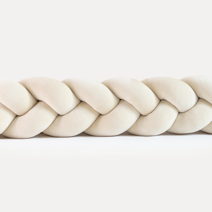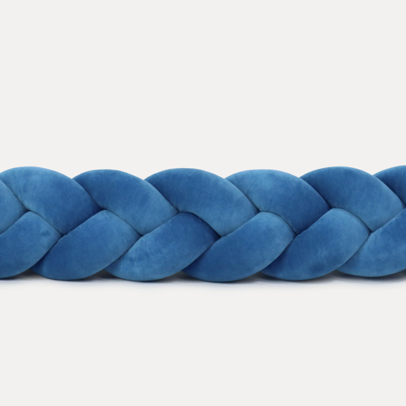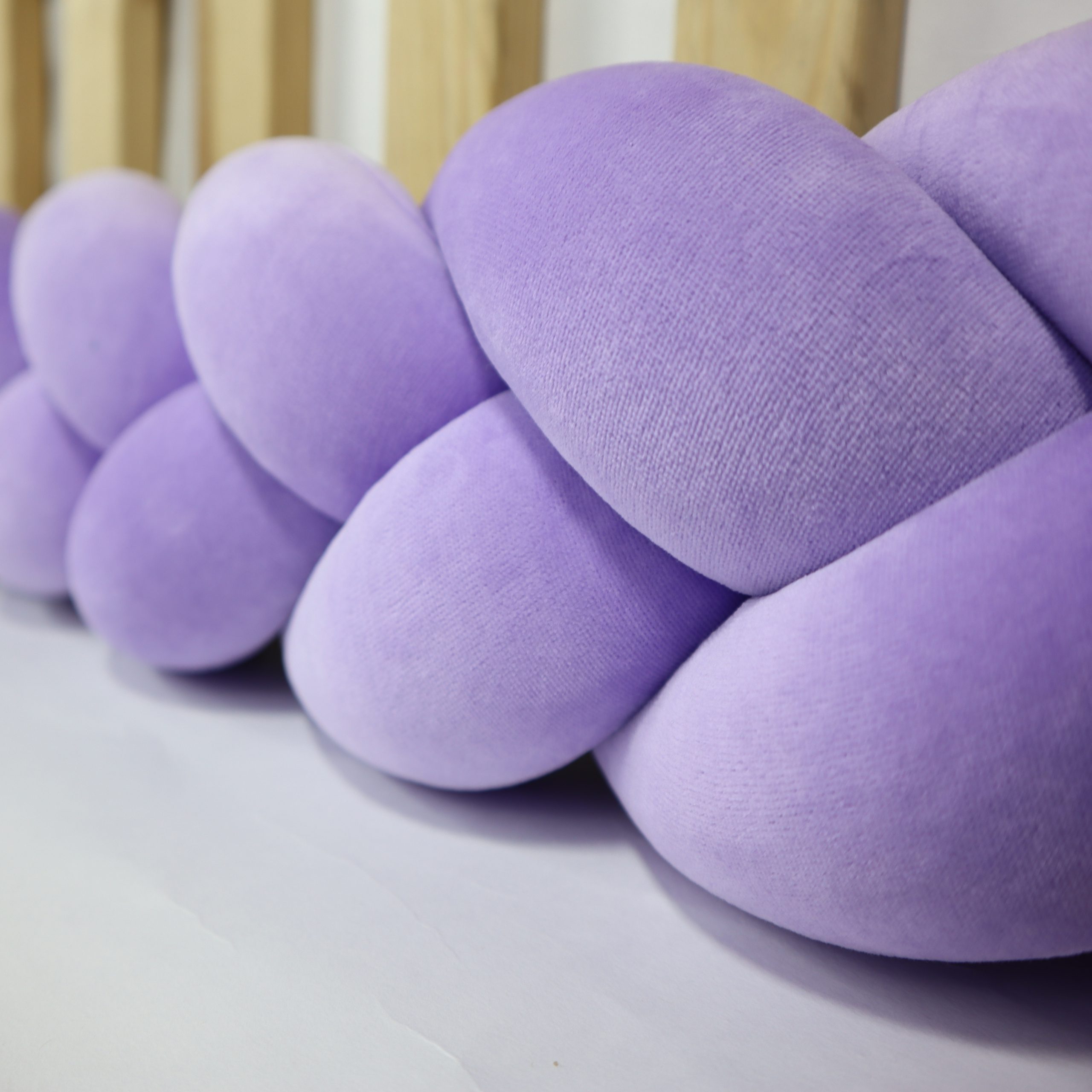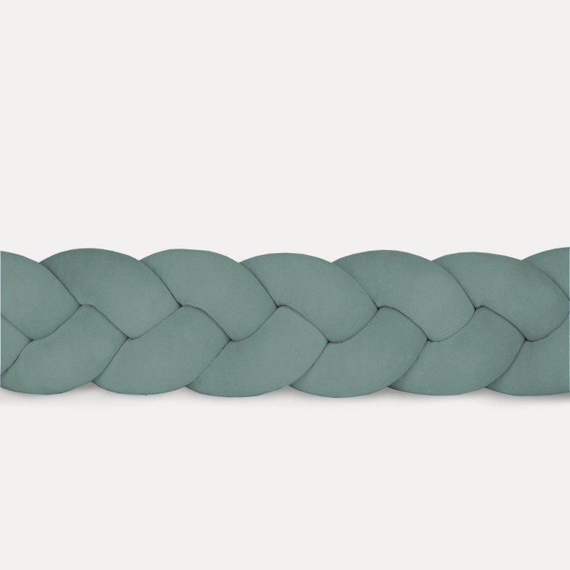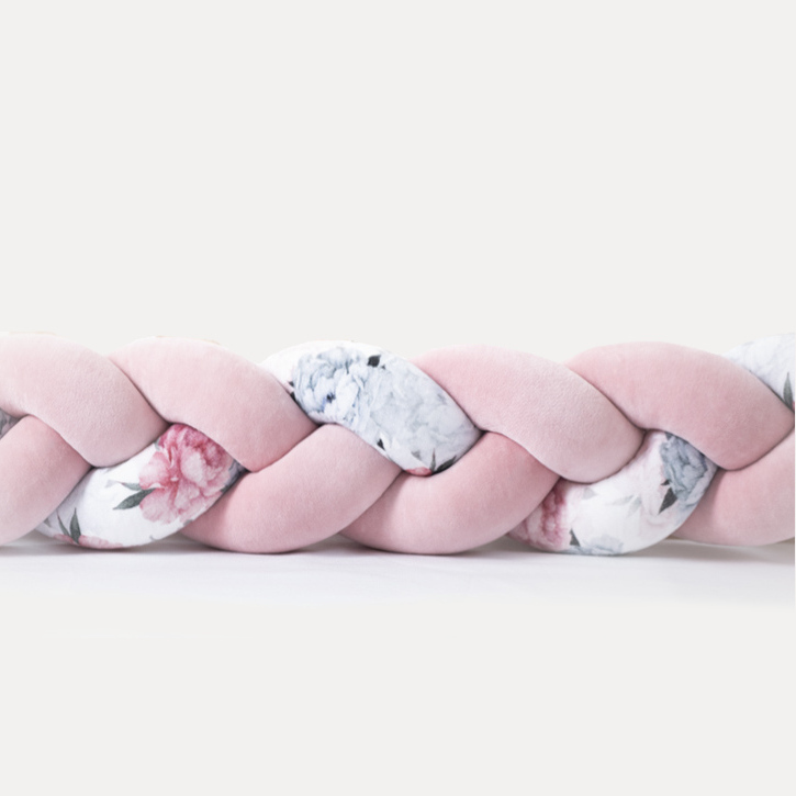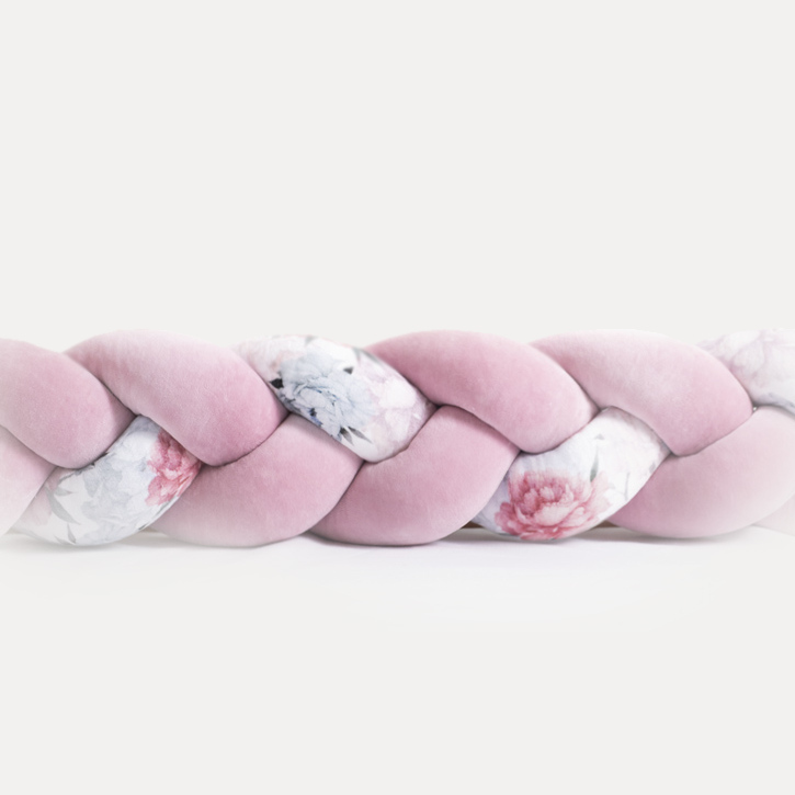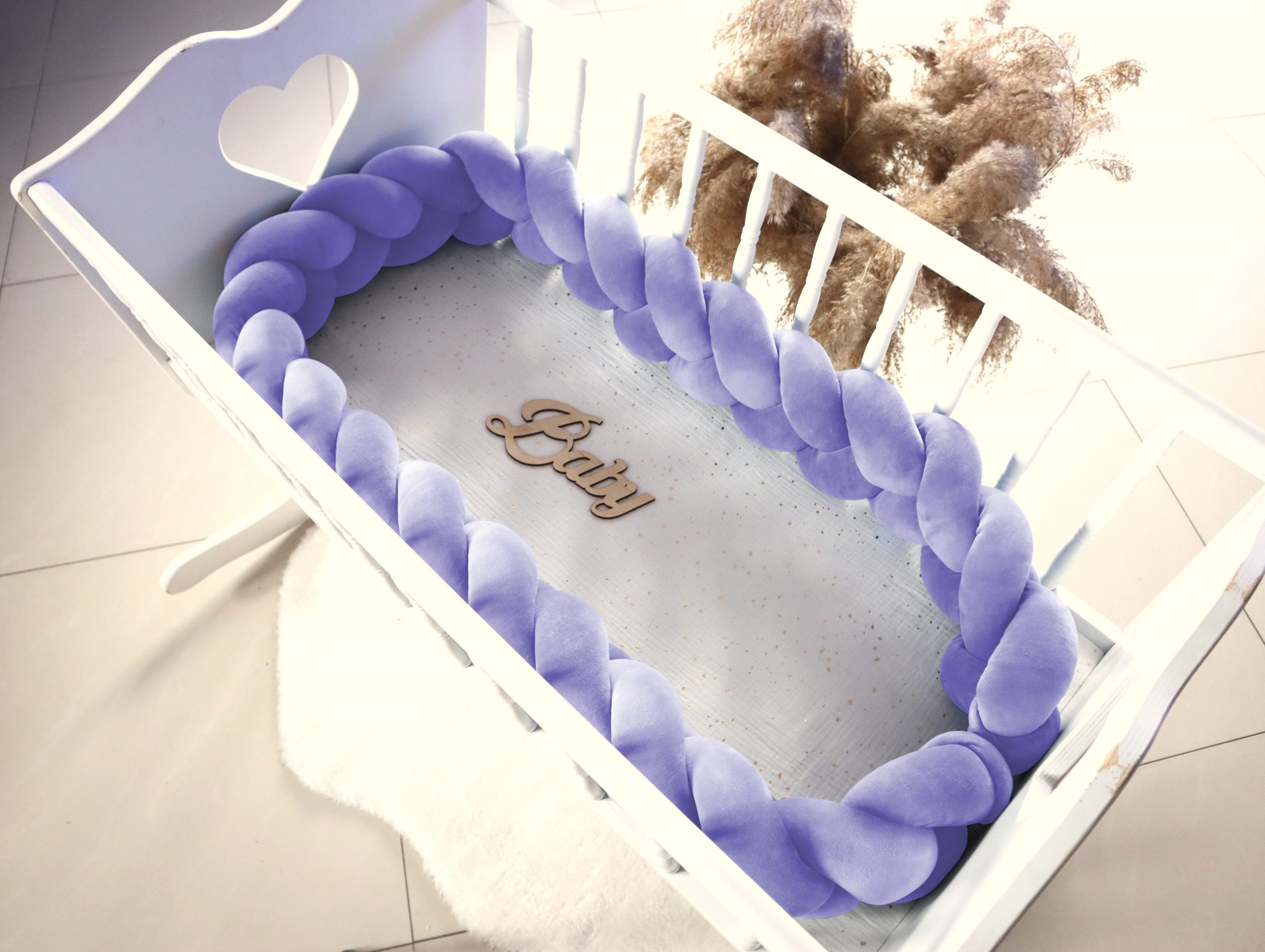 Η πάντα κούνιας σε σχήμα πλεξούδα είναι ένα μοντέρνο και κομψό διακοσμητικό στοιχείο κάθε βρεφικού (και παιδικού) κρεβατιού που δεν πρέπει να λείπει από την προίκα του μωρού σας! Το υλικό που χρησιμοποιούμε για την κατασκευή της είναι βαμβακερό βελούδο εξωτερικά ενώ η γέμιση είναι από αντιαλλεργικά μπιλάκια σιλικόνης κατάλληλα για βρεφική χρήση. Η πλεξούδα λειτουργεί σαν προστατευτικό στην κούνια επιτρέποντας στο μωρό να κινείται άνετα μέσα σε αυτή χωρίς να χτυπάει το κεφαλάκι και το σωματάκι του στις ξύλινες επιφάνειες. Επιπλέον, η πλεξούδα εμποδίζει το μωράκι από το να βάλει τα χεράκια ή τα ποδαράκια του ανάμεσα στα κάγκελα της κούνιας και να παγιδευτεί. Επιλέγοντας μια πλεξούδα σαν πάντα το μωρό αισθάνεται ασφαλές και εσείς μπορείτε να είστε σίγουροι ότι δεν πρόκειται να χτυπήσει όταν κινείται μέσα στην κούνια του! Διαστάσεις: