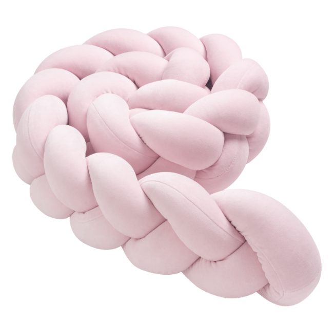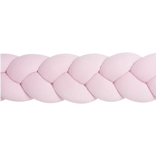 Η πάντα κούνιας σε σχήμα πλεξούδα είναι ένα μοντέρνο και κομψό διακοσμητικό στοιχείο κάθε βρεφικού (και παιδικού) κρεβατιού που δεν πρέπει να λείπει από την προίκα του μωρού σας! Το υλικό που χρησιμοποιούμε για την κατασκευή της είναι βαμβακερό βελούδο εξωτερικά ενώ η γέμιση είναι από αντιαλλεργικά μπιλάκια σιλικόνης κατάλληλα για βρεφική χρήση. Η πλεξούδα λειτουργεί σαν προστατευτικό στην κούνια επιτρέποντας στο μωρό να κινείται άνετα μέσα σε αυτή χωρίς να χτυπάει το κεφαλάκι και το σωματάκι του στις ξύλινες επιφάνειες. Επιπλέον, η πλεξούδα εμποδίζει το μωράκι από το να βάλει τα χεράκια ή τα ποδαράκια του ανάμεσα στα κάγκελα της κούνιας και να παγιδευτεί. Επιλέγοντας μια πλεξούδα σαν πάντα το μωρό αισθάνεται ασφαλές και εσείς μπορείτε να είστε σίγουροι ότι δεν πρόκειται να χτυπήσει όταν κινείται μέσα στην κούνια του! Διαστάσεις: