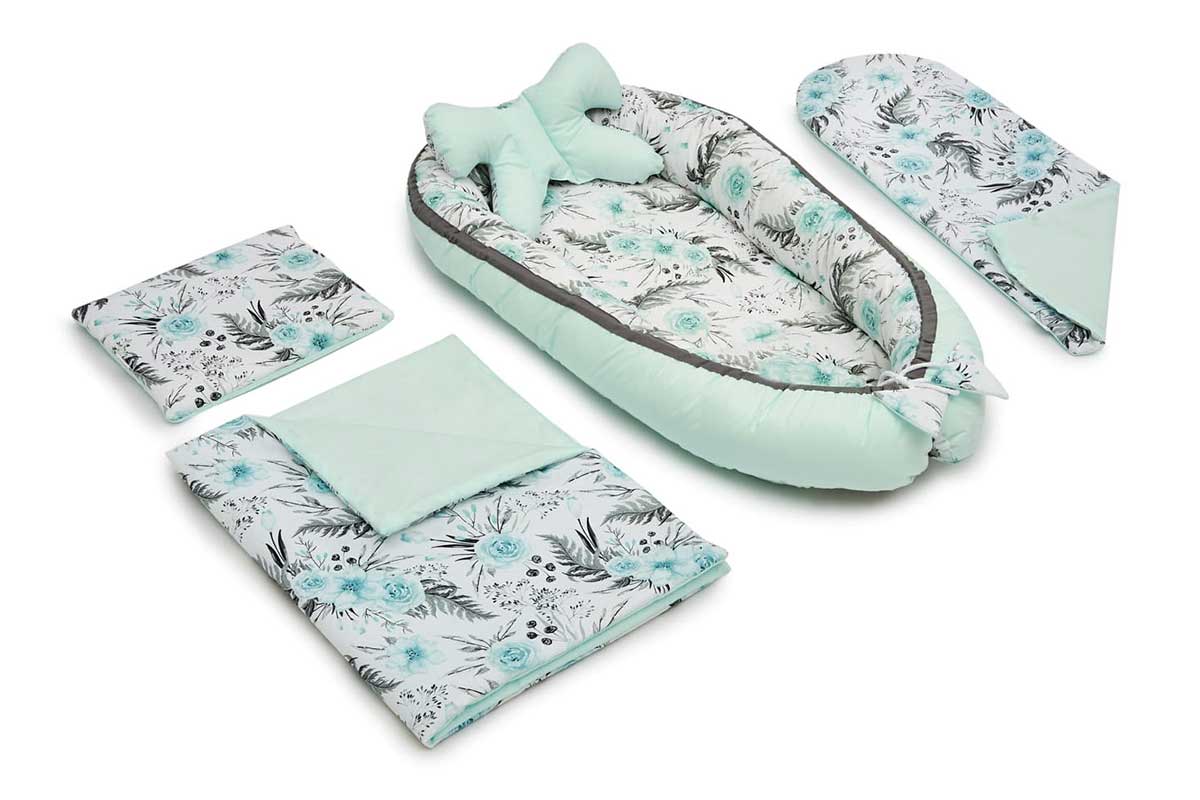 Βρεφική Φωλιά Λουλούδι Μέντα με Σετ Δώρου 4+1