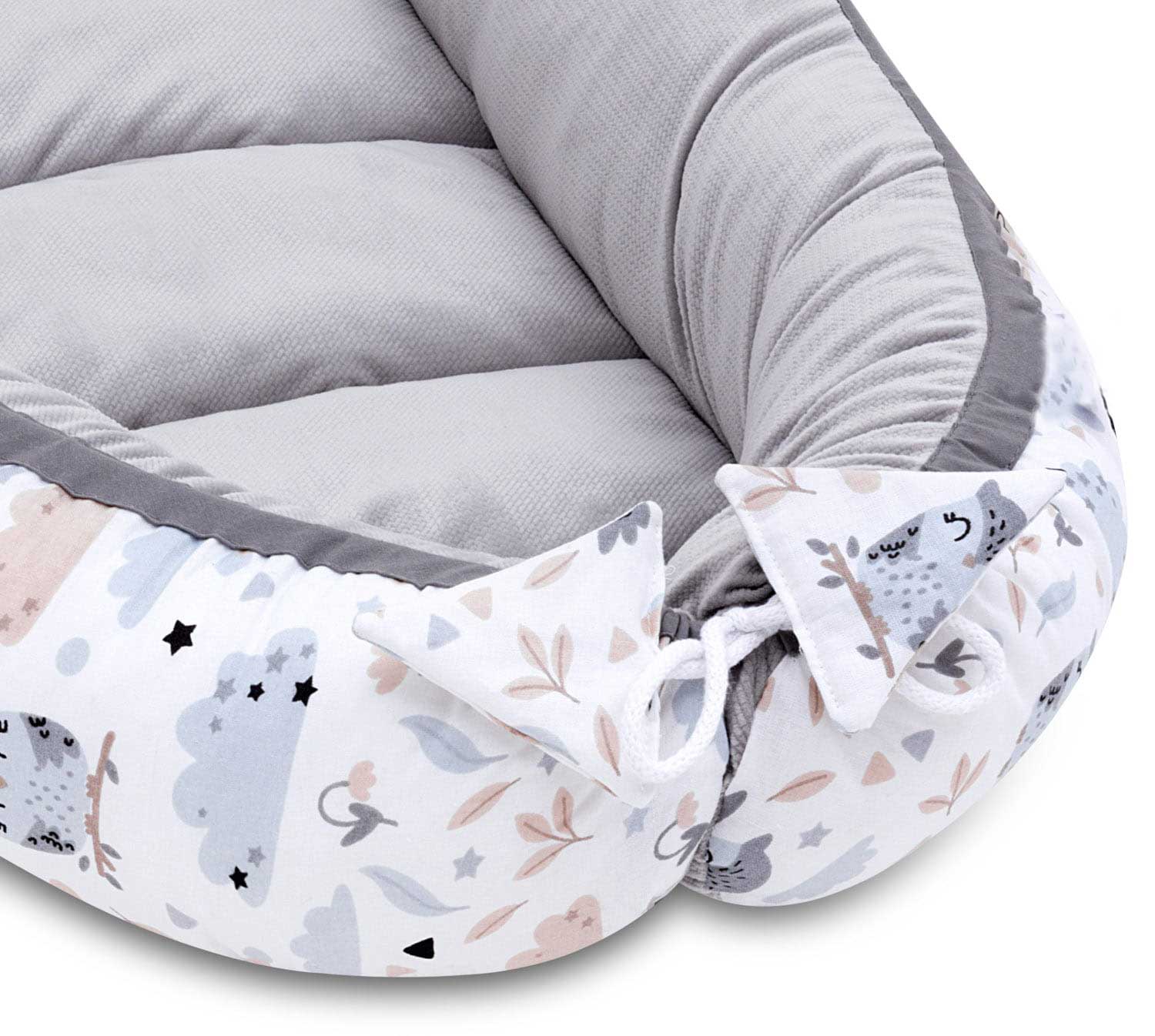 - στο κρεβάτι των γονιών – η φωλιά παρέχει έναν ασφαλή χώρο για το μωρό, προστατεύει από το κύλισμα, τη σύνθλιψη ή την εξαφάνιση κάτω από τα καλύμματα (συνιστούμε ιδιαίτερα σε μητέρες που κοιμούνται με τον θησαυρό τους),