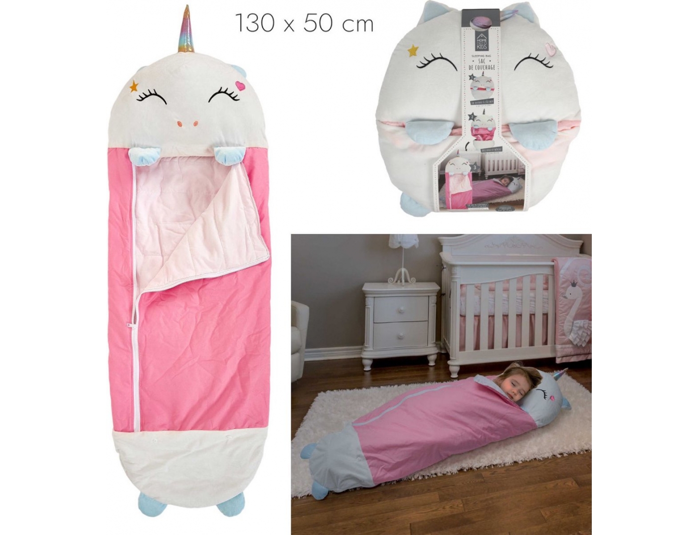Παιδικός υπνόσακος Σχέδιο μονόκερου, Μετατρέψιμος, Mε Ενσωματωμένο μαξιλάρι, 50x130cm, Λευκό & Ροζ