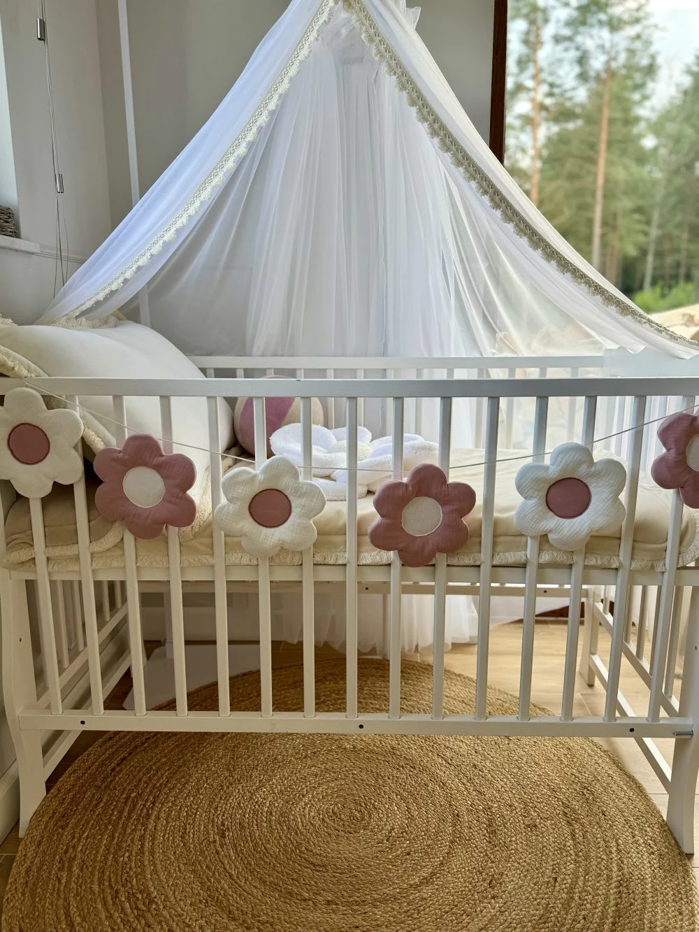 Η γιρλάντα με λουλουδάκια είναι μια τέλεια διακόσμηση για το παιδικό δωμάτιο. Είναι κατασκευασμένη από υψηλής ποιότητας βαμβακερή μουσελίνα.