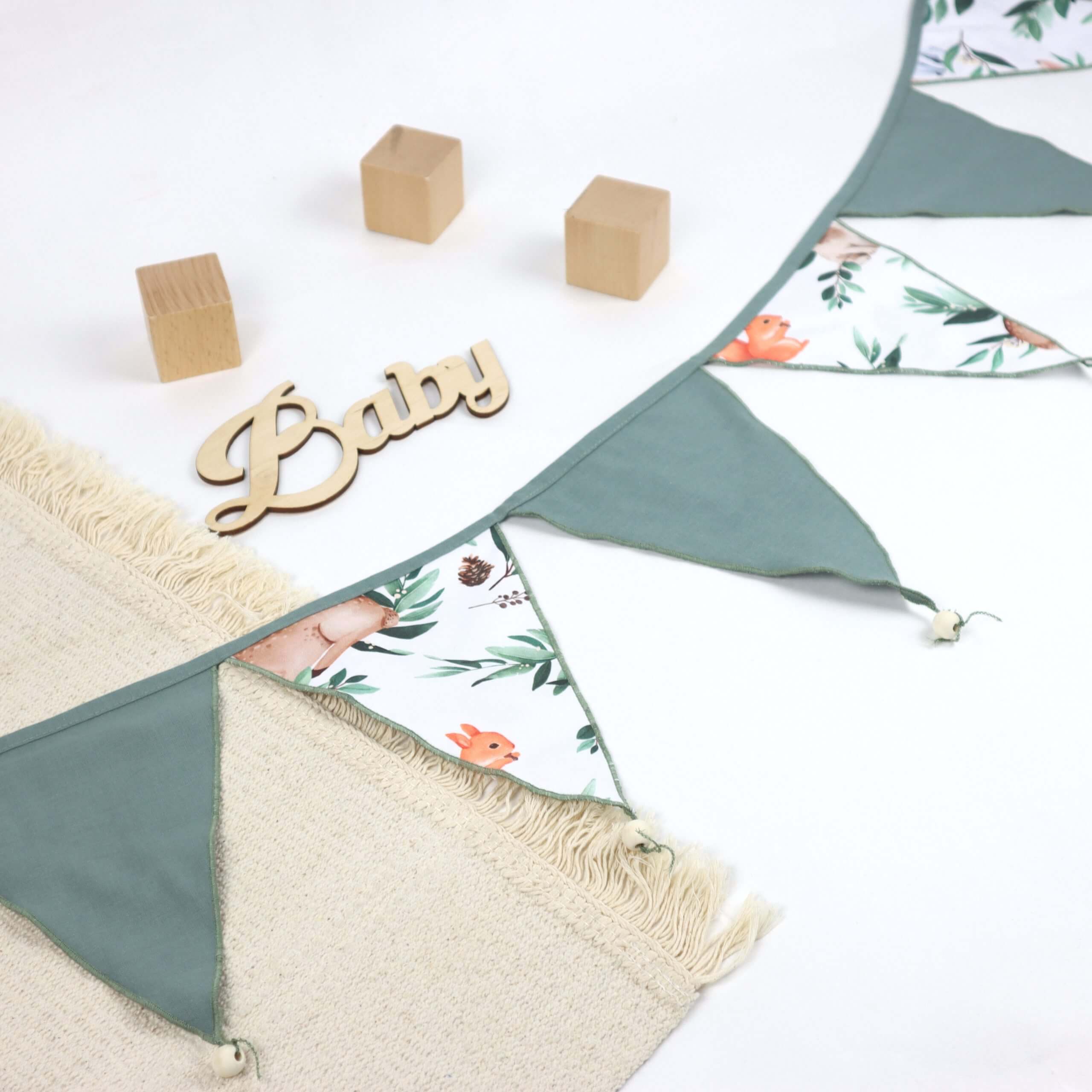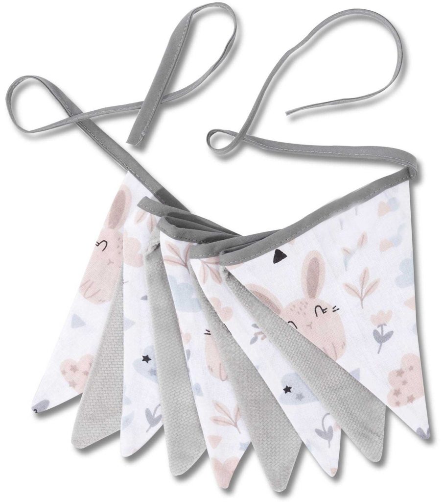 Η γιρλάντα με τρίγωνα σημαιάκια είναι μια τέλεια διακόσμηση για παιδικό δωμάτιο. Είναι κατασκευασμένη από υψηλής ποιότητας βαμβάκι.