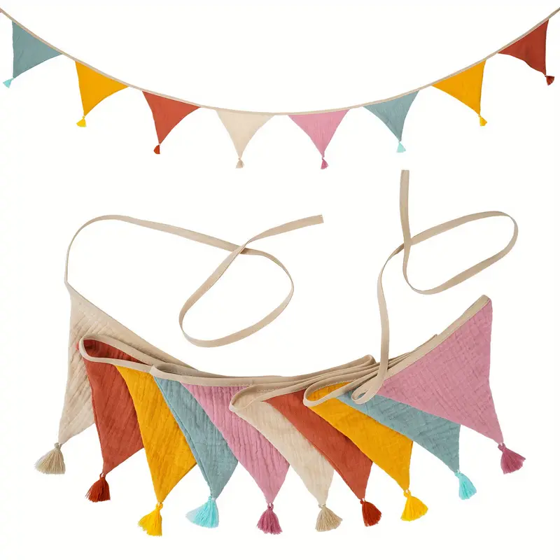 Προδιαγραφές: Η γιρλάντα με τρίγωνα σημαιάκια είναι μια τέλεια διακόσμηση για παιδικό δωμάτιο. Είναι κατασκευασμένη από υψηλής ποιότητας βαμβάκι.