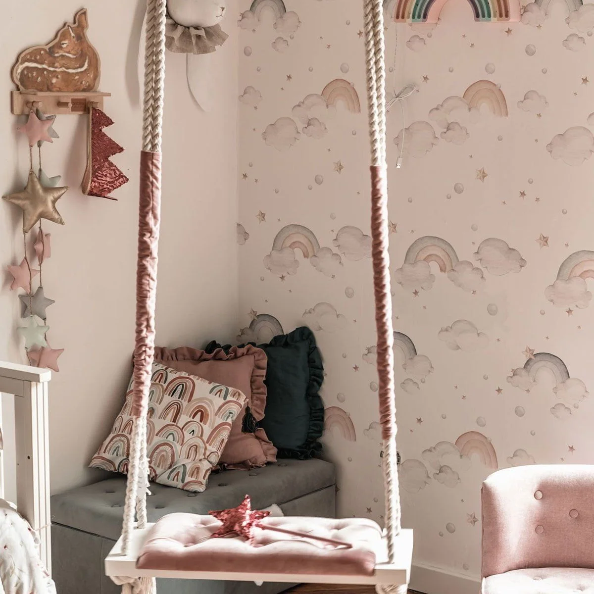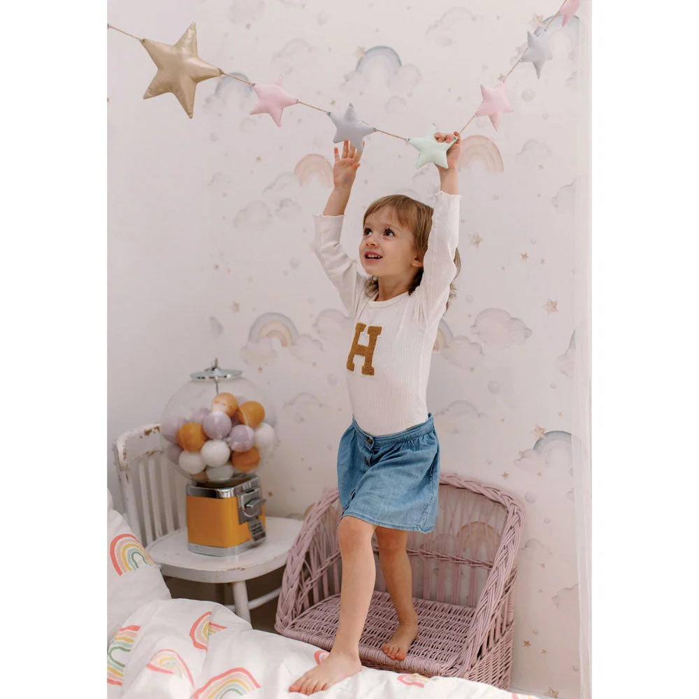 Η ταπετσαρία Rainbows είναι μια ταπετσαρία σχεδιασμένη για έναν ήρεμο αλλά διασκεδαστικό παιδικό εσωτερικό χώρο. Μια καθαρή, επαναλαμβανόμενη ρίγα που διαβάζεται όμορφα από απόσταση και από κοντά. Ιδανική για να διακοσμήσει τον τοίχο πίσω από μια κούνια/κρεβάτι ή να τυλίξει ολόκληρο το δωμάτιο, αν σας αρέσει το μοτίβο. Εύκολο να συνδυαστεί με απλά υφάσματα και έπιπλα από φυσικό ξύλο. Τυπωμένη σε εκλεπτυσμένο ματ χαρτί της Dekornik και κατασκευασμένη με οικολογική και ασφαλή νοοτροπία. Το προϊόν αποτελείται από ρολά διαστάσεων: Ύψος: 280 εκ. Πλάτος: 50 εκ. Η τιμή αφορά ένα τεμάχιο. Για τοίχο 2 μέτρων, χρειάζεστε 4 τεμάχια/ ρολά .