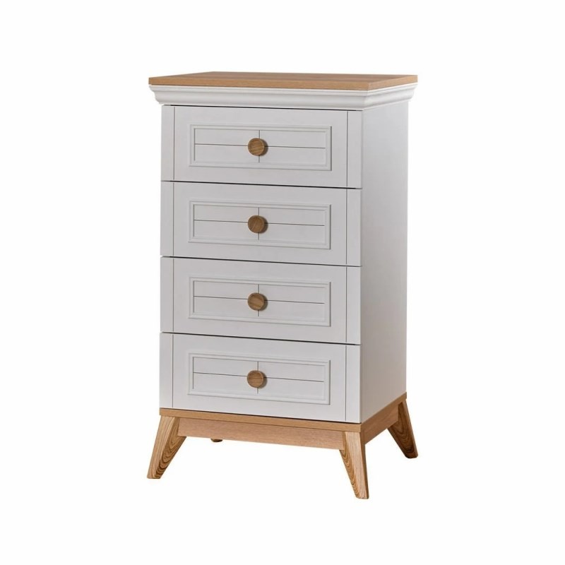 Διαθέτει τρία ευρύχωρα συρτάρια σε άσπρο χρώμα που προσδίδουν μια ρομαντική και μοντέρνα πινελιά.