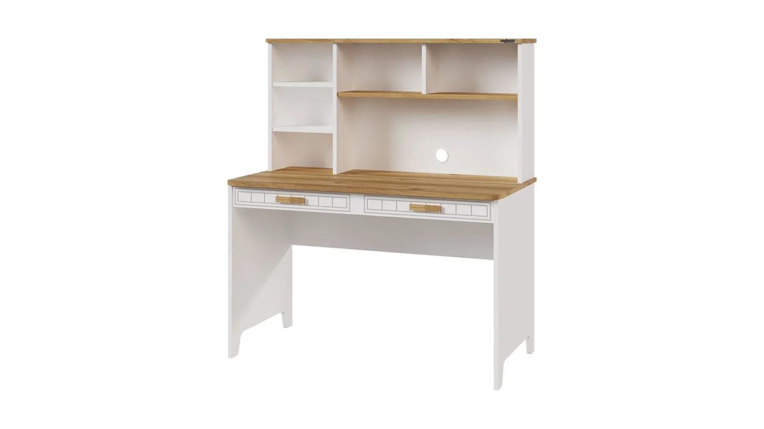 Kομψό και λειτουργικό σχέδιο, κατάλληλο για εφηβικό δωμάτιο ή μικρούς χώρους. Bαμμένη σε απαλή λευκή απόχρωση, με τρία ανοιχτά ράφια για αποθήκευση ή διακόσμηση, και ένα ντουλάπι στο κάτω μέρος για επιπλέον αποθήκευση.