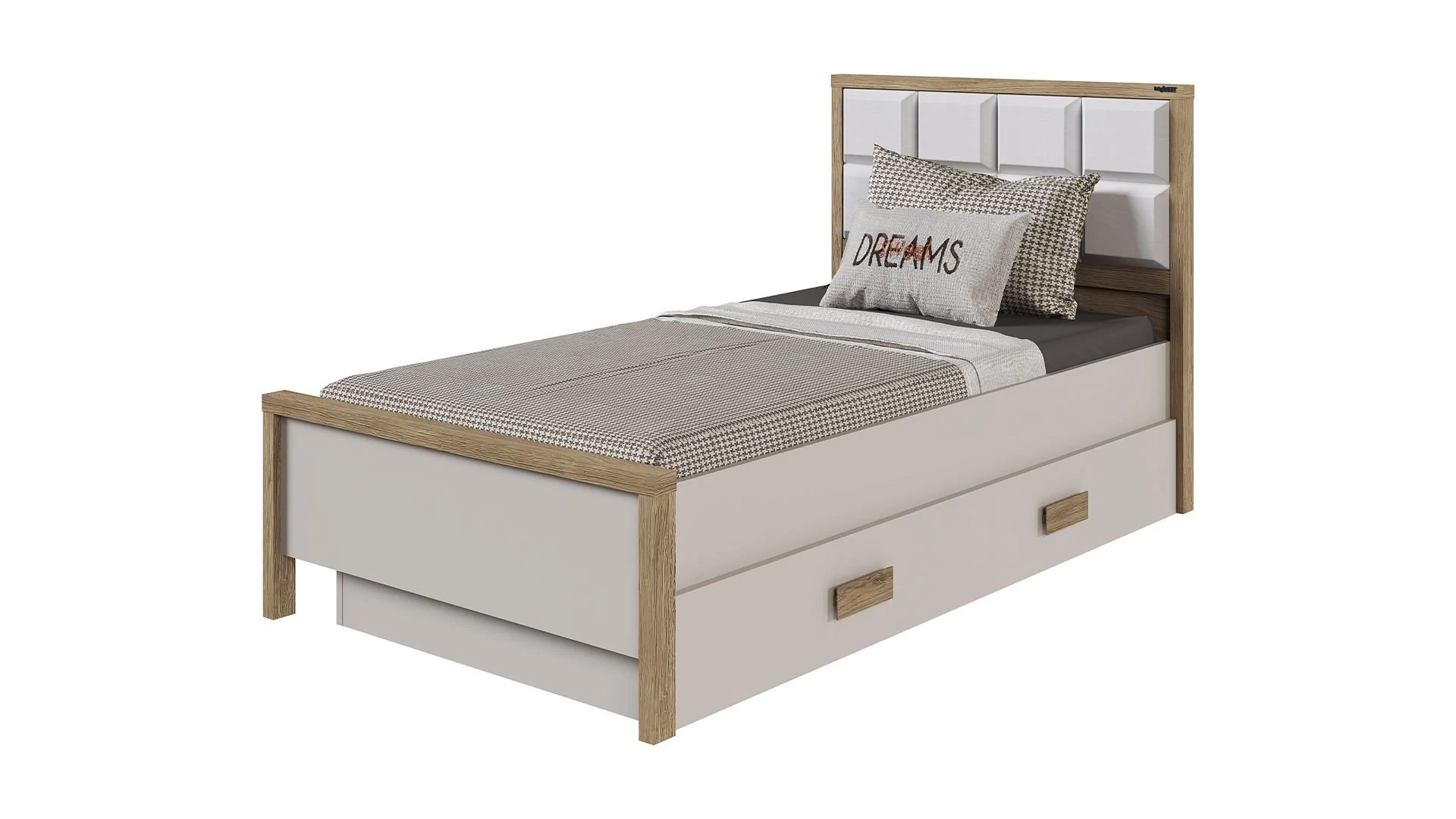Κατασκευασμένο από μοριοσανίδα με επένδυση μελαμίνης που διαθέτει ιδιαίτερα ανθεκτική στο νερό και την υγρασία. Δεν περιέχει καρκινογόνες ουσίες και πληροί τα κριτήρια ασφάλειας για την ανθρώπινη υγεία. Με συρόμενο έξτρα κρεβάτι.