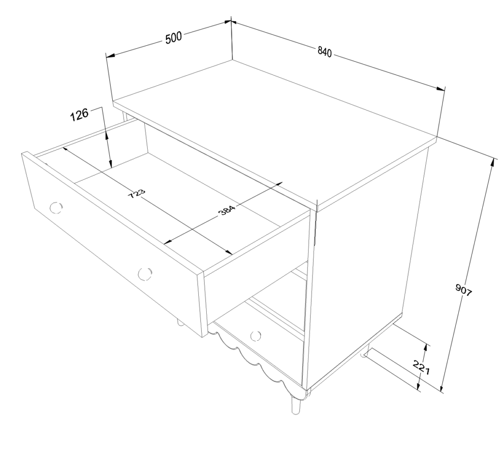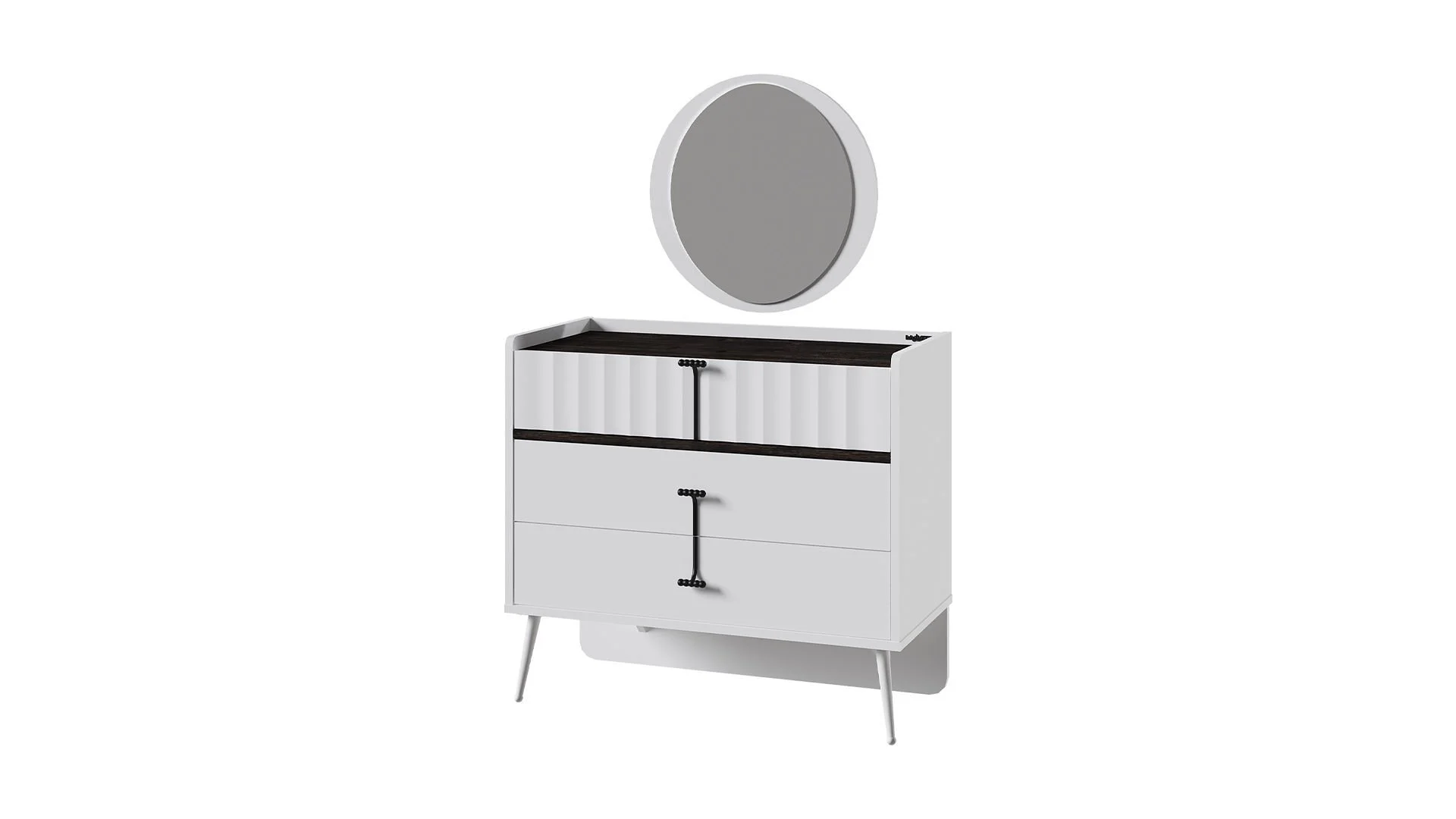 Διαθέτει τρία ευρύχωρα συρτάρια σε άσπρο χρώμα που προσδίδουν μια μοντέρνα  πινελιά.