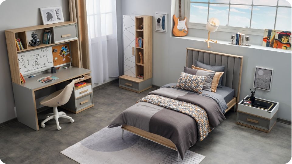 Το κρεβάτι Evon είναι ένα μοντέρνο, ημίδιπλο κρεβάτι με καλαίσθητο και κομψό σχεδιασμό. Διαθέτει ένα βελούδινο κεφαλάρι σε γκρι απόχρωση, που προσθέτει μια ρομαντική και ζεστή πινελιά στο χώρο. Το λευκό πλαίσιο και οι λεπτομέρειες ολοκληρώνουν τη minimal αισθητική του δωματίου, προσφέροντας μια φωτεινή και αρμονική εικόνα. Ιδανικό για στρώμα διαστάσεων 100 x 200 εκ. και 120×200 εκ. , το κρεβάτι είναι κατάλληλο για ένα παιδικό ή εφηβικό δωμάτιο, συνδυάζοντας λειτουργικότητα και στυλ. Χαρακτηριστικά & Προνόμια Συμπεριλαμβάνονται