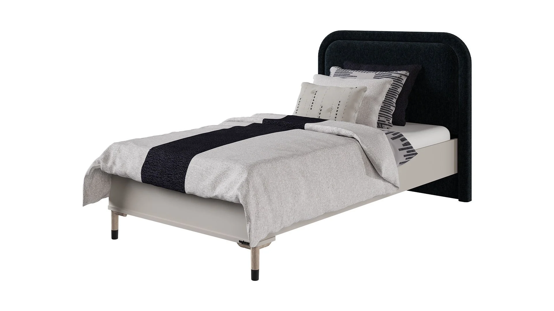 Το ημίδιπλο κρεβάτι Lion της εικόνας προσφέρει έναν κομψό και άνετο χώρο ύπνου, συνδυάζοντας μοντέρνα αισθητική και ποιοτικά υλικά.