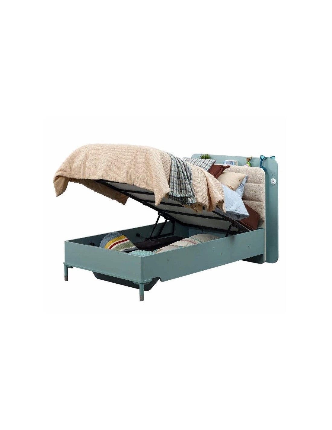Το κρεβάτι Marine Blue Lux με αποθηκευτικό χώρο είναι ένα ημίδιπλο κρεβάτι με καλαίσθητο και μοντέρνο σχεδιασμό. Διαθέτει έναν πρακτικό αποθηκευτικό χώρο στο κάτω μέρος ο οποίος είναι ιδανικός για την οργάνωση παιχνιδιών, κλινοσκεπασμάτων ή άλλων αντικειμένων, κάνοντας το κρεβάτι ακόμα πιο λειτουργικό. Διαθέτει επιπλέον ένα υφασμάτινο κεφαλάρι σε ανοιχτή γκρι απόχρωση με led φωτισμό. Ιδανικό για στρώμα διαστάσεων 100 x 200 εκ. και 120×200 εκ. , το κρεβάτι είναι κατάλληλο για ένα παιδικό ή εφηβικό δωμάτιο, συνδυάζοντας λειτουργικότητα και στυλ. Χαρακτηριστικά & Προνόμια Συμπεριλαμβάνονται Στην παραπάνω τιμή δεν περιλαμβάνεται η συναρμολόγηση.