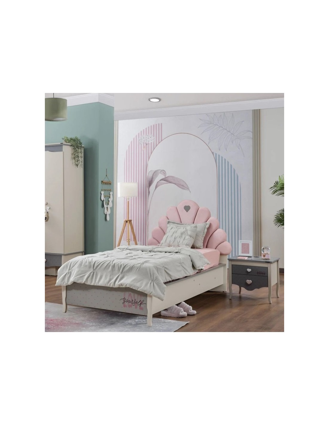 Το κρεβάτι Juliet είναι μια κομψή και ιδιαίτερη επιλογή, ιδανική για εφηβικά δωμάτια, που συνδυάζει λειτουργικότητα και αισθητική. Ξεχωρίζει για το μοναδικό κεφαλάρι του, σε σχήμα κοχυλιού, που προσδίδει μια ρομαντική και παραμυθένια διάθεση στο χώρο. Είναι διαθέσιμο σε δύο χρώματα: απαλό ροζ και διακριτικό γκρι, ώστε να προσαρμόζεται σε διαφορετικά στυλ και γούστα.