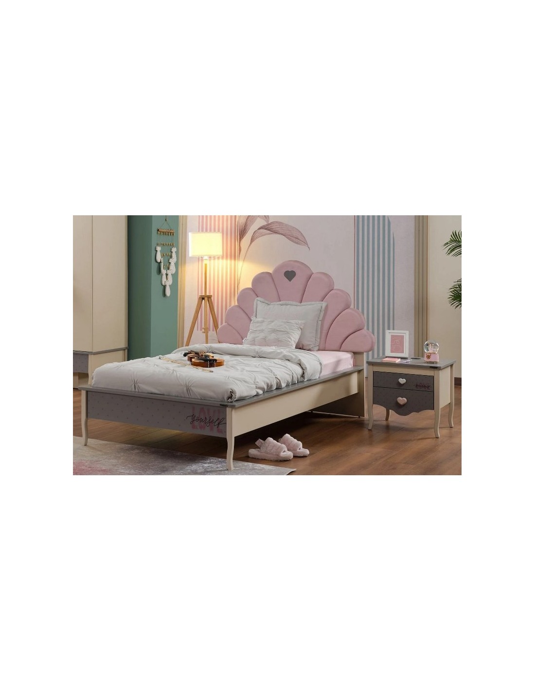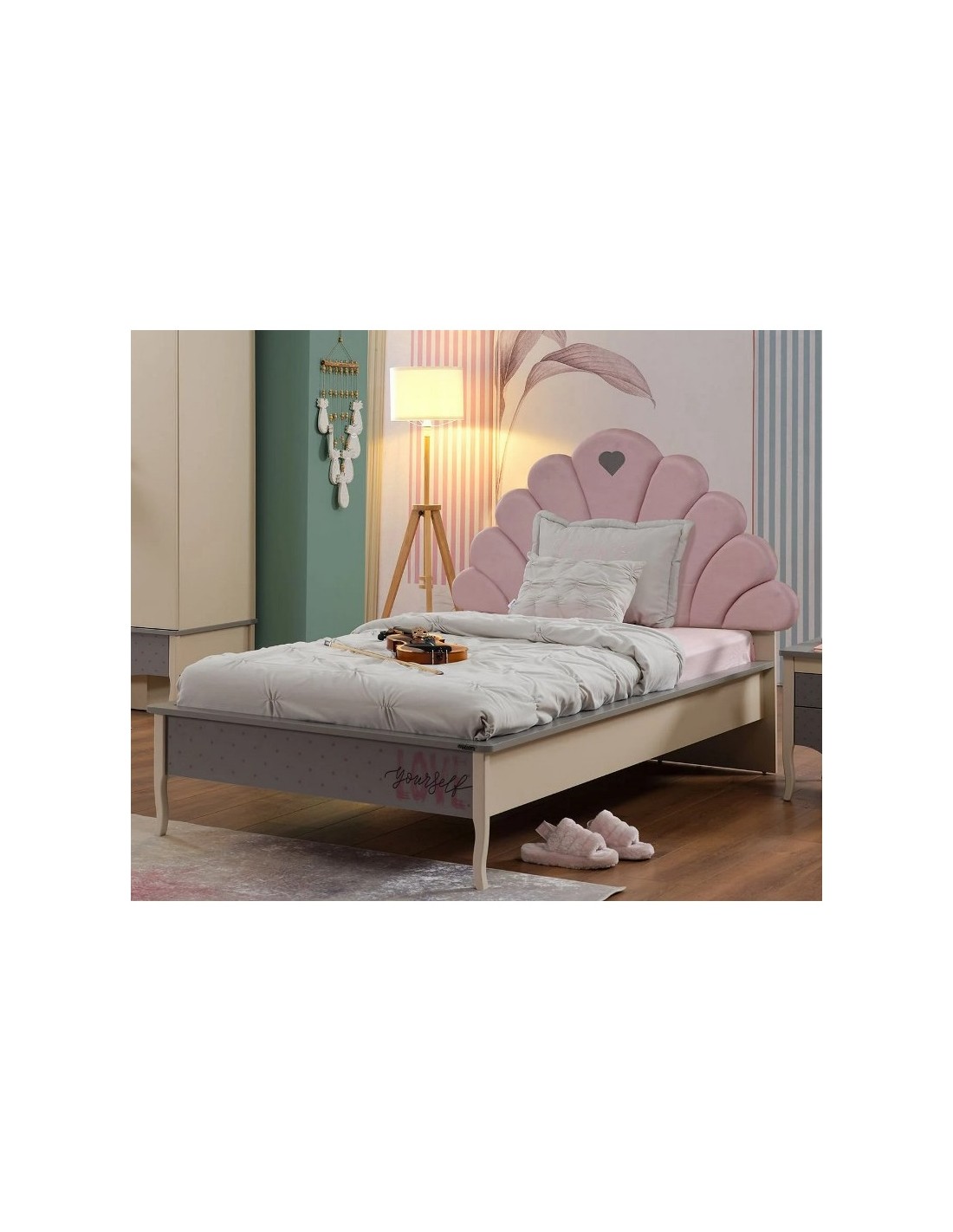 Ξεχωρίζει για το μοναδικό κεφαλάρι του, σε σχήμα κοχυλιού, που προσδίδει μια ρομαντική και παραμυθένια διάθεση στο χώρο. Είναι διαθέσιμο σε δύο χρώματα: απαλό ροζ και διακριτικό γκρι, ώστε να προσαρμόζεται σε διαφορετικά στυλ και γούστα.