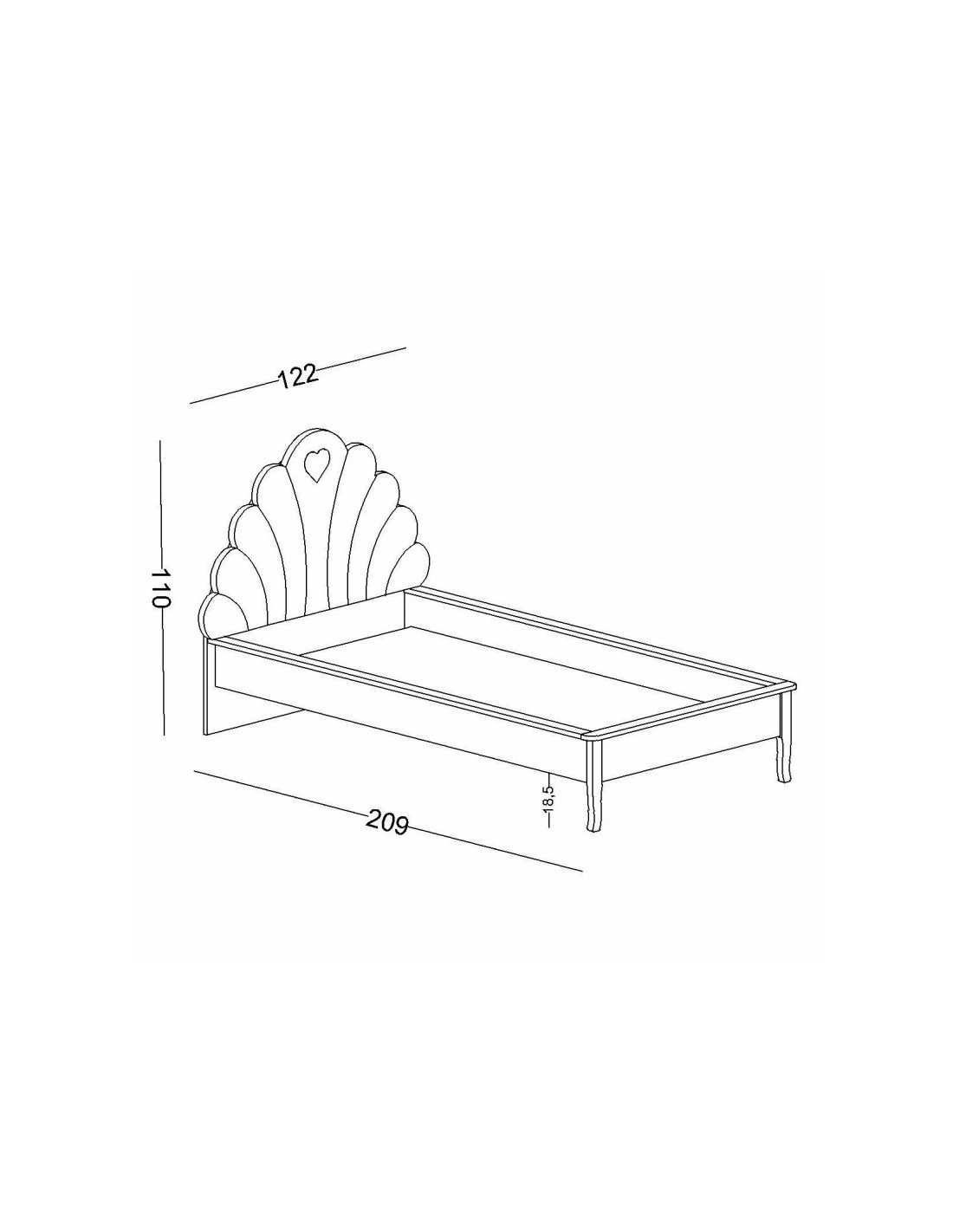 • Διαστάσεις κρεβατιού για στρώμα 100×200 – 209  x 110  x 122 εκ.