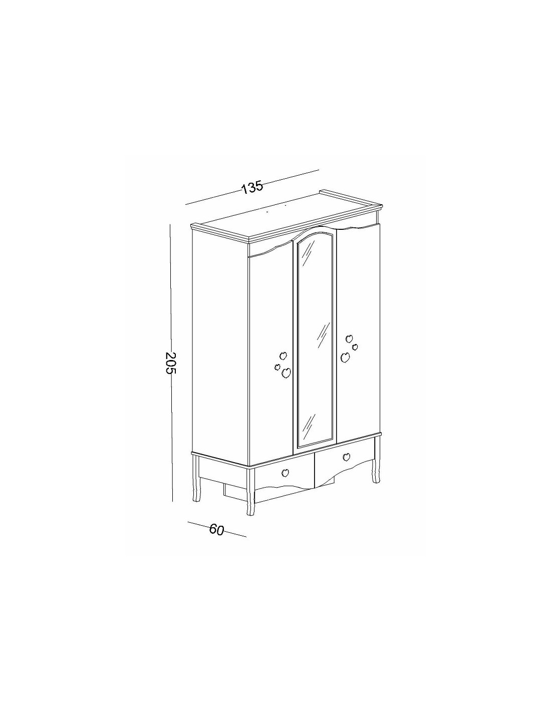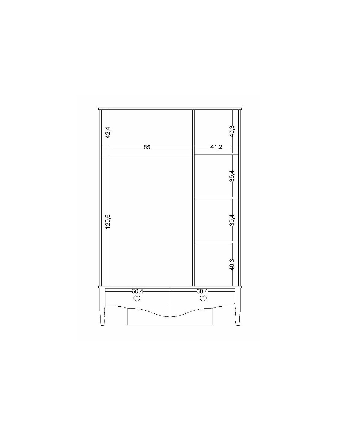 Οι καμπυλωτές λεπτομέρειες στη βάση και οι λαβές καρδιάς τονίζουν τη ρομαντική αισθητική της σειράς Juliet, ενώ η στιβαρή κατασκευή εξασφαλίζει αντοχή και μακροχρόνια χρήση. Μια ιδανική λύση αποθήκευσης που συνδυάζει ομορφιά, χρηστικότητα και οργάνωση, για ένα καλαίσθητο και λειτουργικό δωμάτιο.