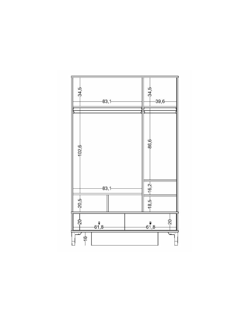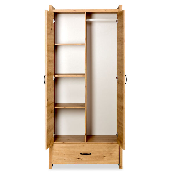 Με ευρύχωρους αποθηκευτικούς χώρους, κρεμάστρες, ράφια και δύο συρτάρια στη βάση, προσφέρει πρακτικότητα για ρούχα και αξεσουάρ.