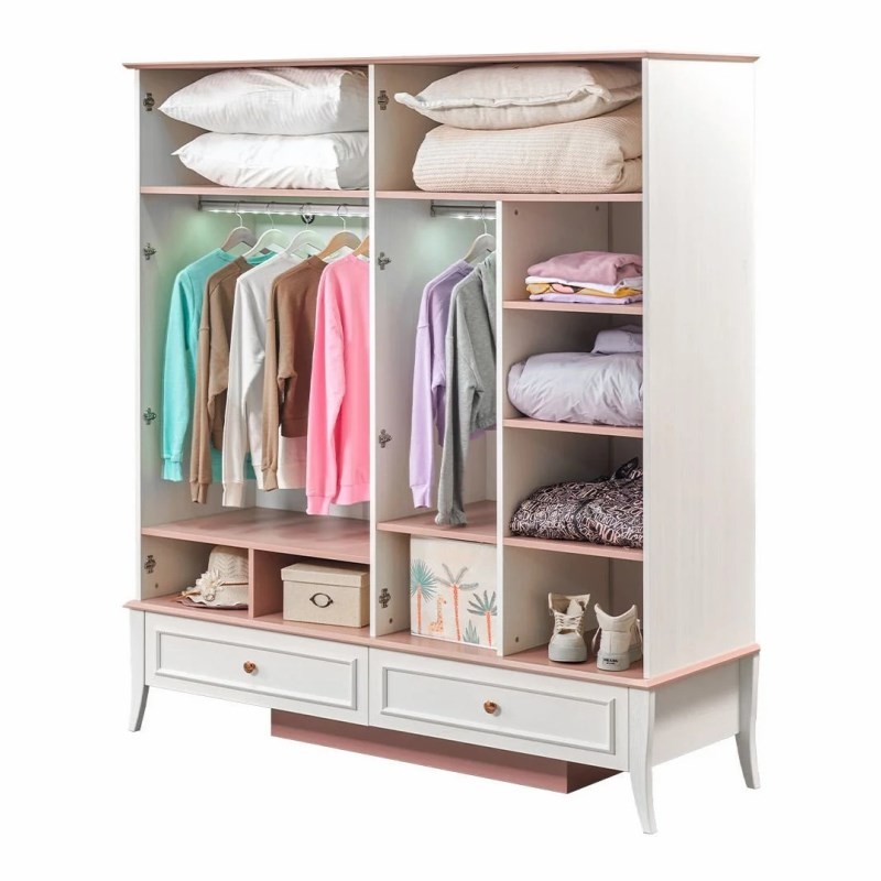 Με ευρύχωρους αποθηκευτικούς χώρους, κρεμάστρες, ράφια και δύο συρτάρια στη βάση, προσφέρει πρακτικότητα για ρούχα και αξεσουάρ.