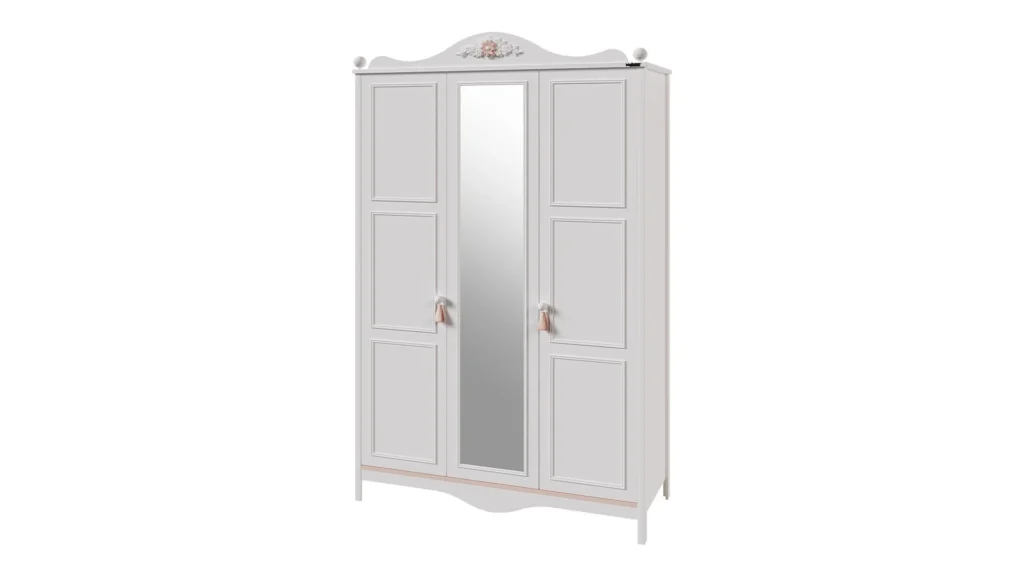 Η Τρίφυλλη Ντουλάπα διαθέτει μια ράγα και τρία ράφια και τεχνολογία soft-closing και ταιριάζει σε κάθε βρεφικό υπνοδωμάτιο.
