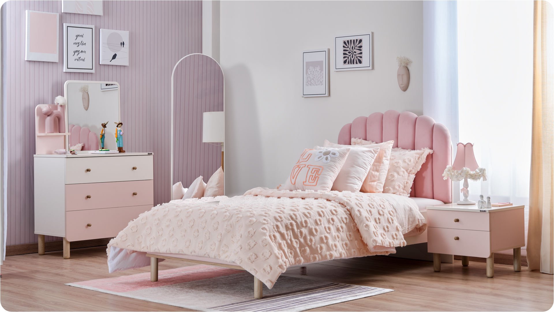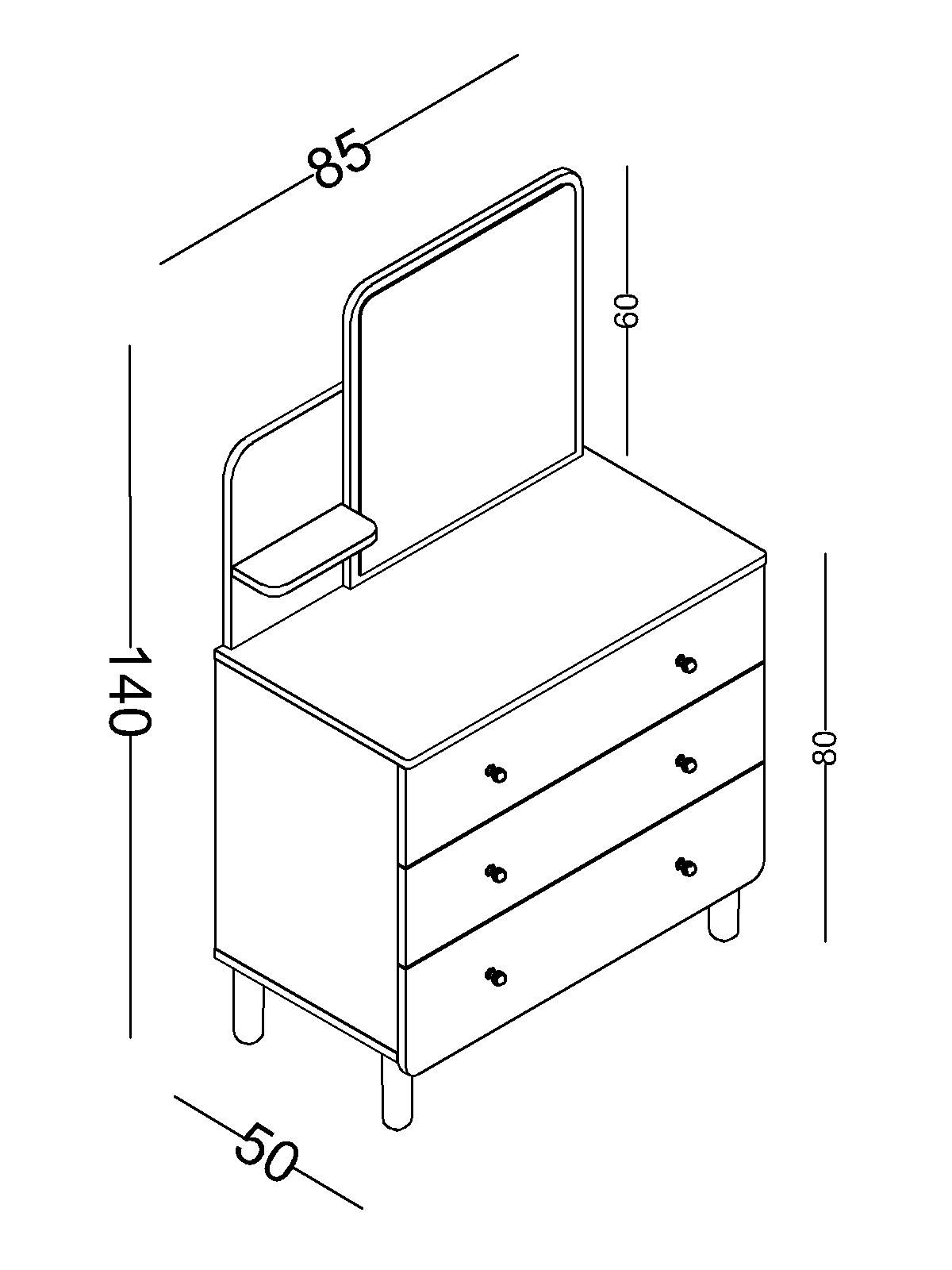 Διαθέτει τρία ευρύχωρα συρτάρια σε ροζ χρώμα , που προσδίδουν μια ρομαντική και μοντέρνα πινελιά.