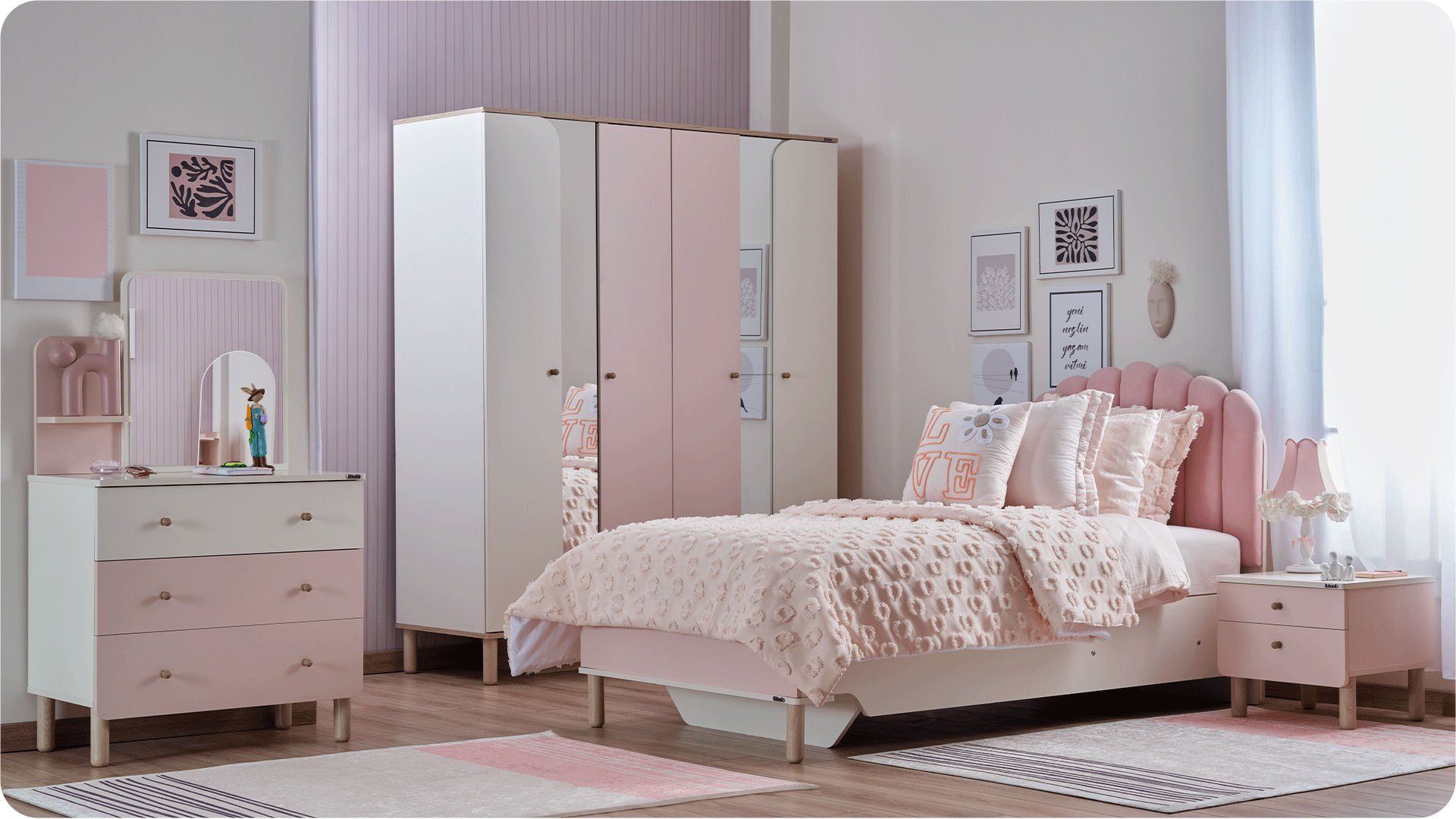 Ο μοντέρνος σχεδιασμός της με απαλές αποχρώσεις ροζ και λευκού την καθιστά ιδανική για παιδικά ή νεανικά δωμάτια, προσθέτοντας στυλ και οργάνωση στον χώρο σας.