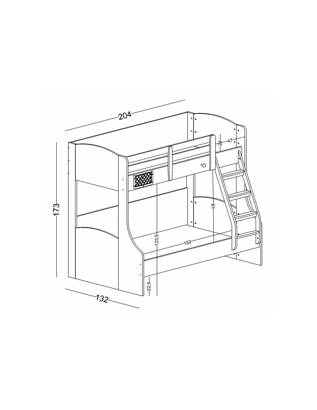 Διαστάσεις Κουκέτας: 204 x 173 x 132