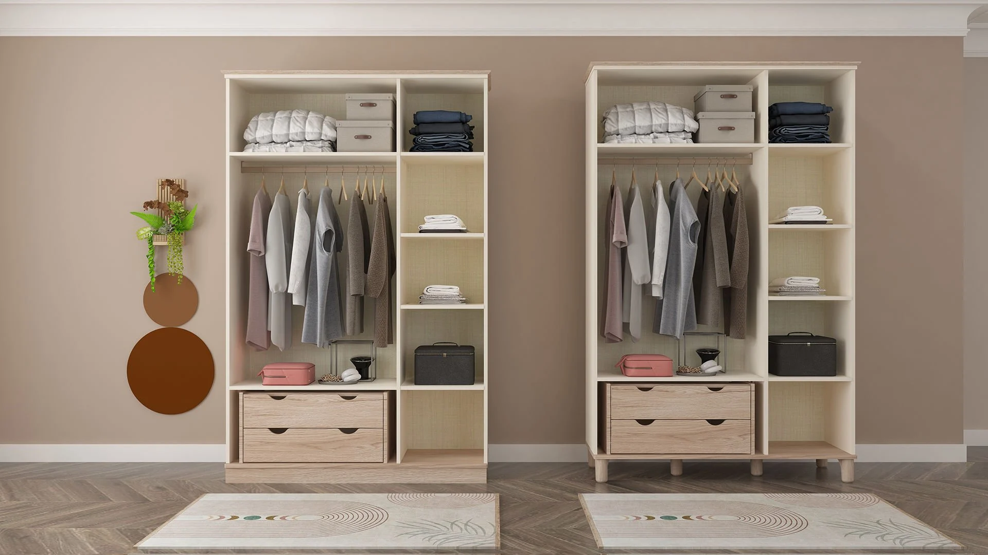 Η τρίφυλλη ντουλάπα Bohemsoft (με πόδια) συνδυάζει λειτουργικότητα και αισθητική, ιδανική για την οργάνωση κάθε χώρου. Με ευρύχωρους αποθηκευτικούς χώρους, κρεμάστρες, ράφια και δύο συρτάρια στη βάση, προσφέρει πρακτικότητα για ρούχα και αξεσουάρ. * Αποτελείται από δύο ξύλινα φύλλα και η τρίτη πόρτα καλύπτεται από γυάλινο καπάκι