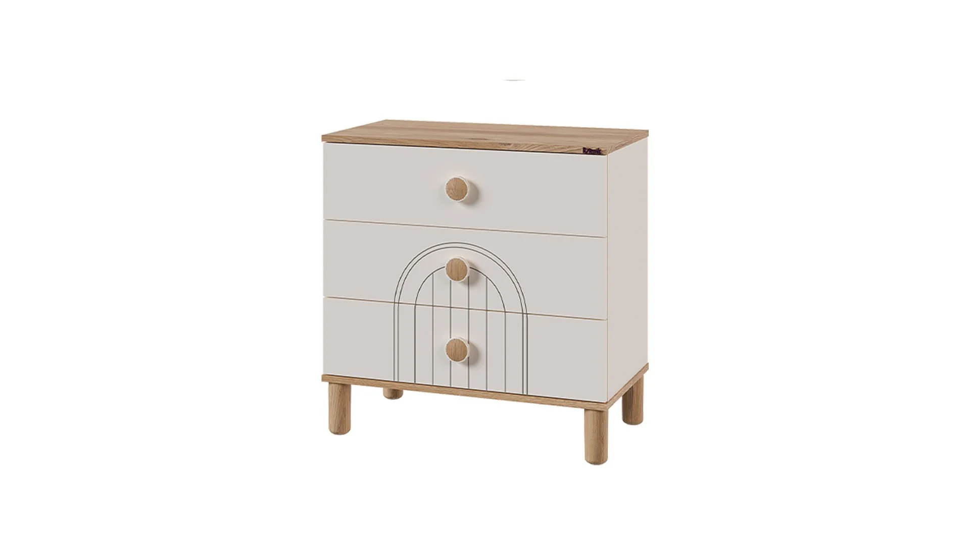 Διαθέτει τρία ευρύχωρα συρτάρια σε λευκό χρώμα χρώμα, ,με σχέδιο που προσδίδουν μια μοντέρνα πινελιά.