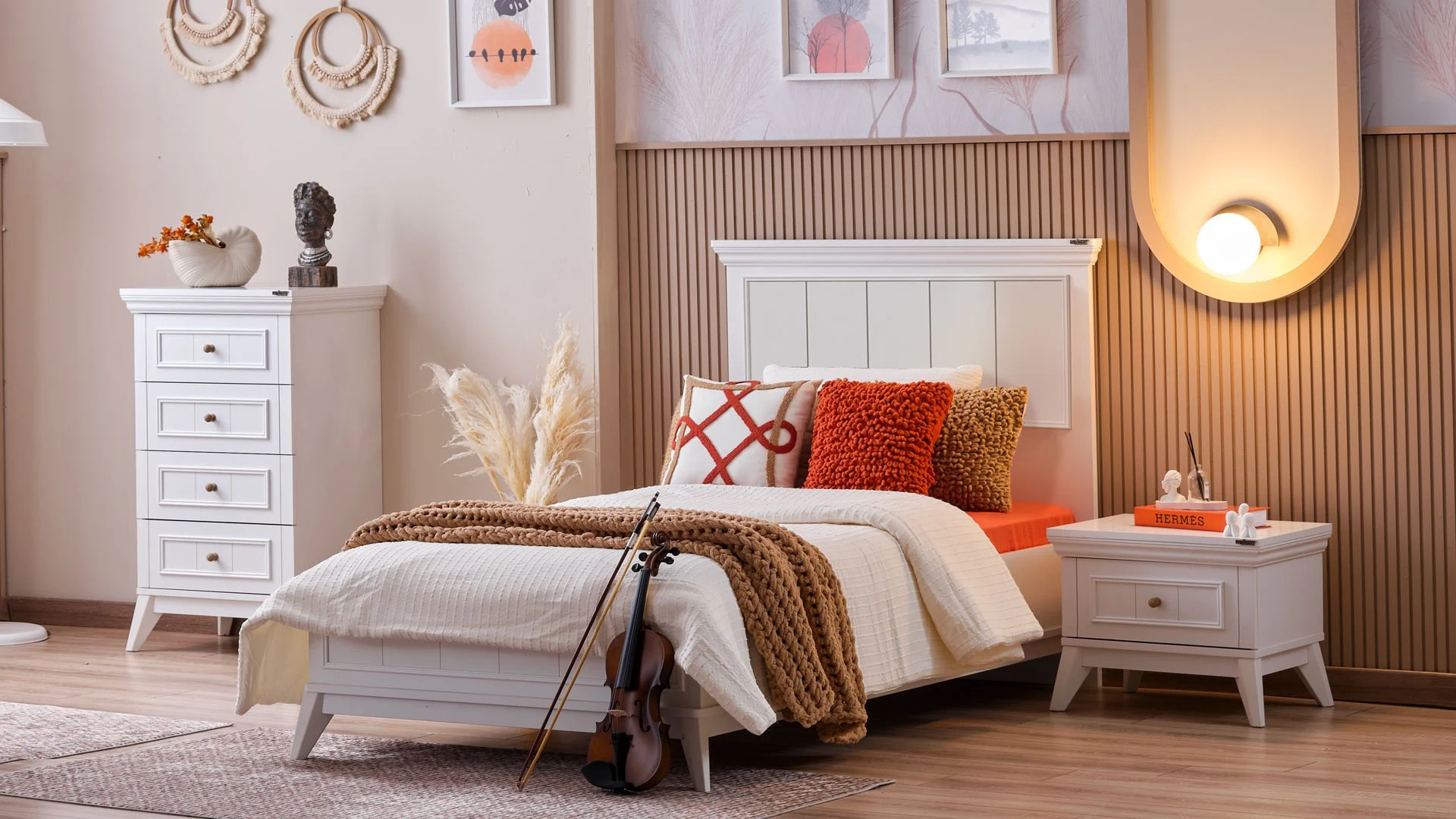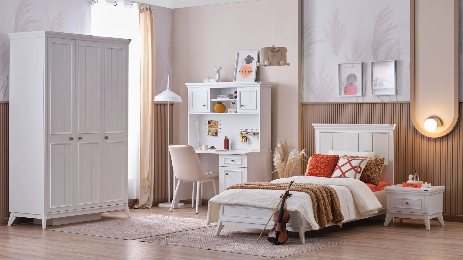 Το λευκό πλαίσιο και οι λεπτομέρειες ολοκληρώνουν τη minimal αισθητική του δωματίου, προσφέροντας μια φωτεινή και αρμονική εικόνα. To απλό κρεβάτι Gloria είναι ένα μοντέρνο, ημίδιπλο κρεβάτι με καλαίσθητο και κομψό σχεδιασμό. Ιδανικό για στρώμα διαστάσεων 100 x 200 εκ. και 120 x 200 εκ. , το κρεβάτι είναι κατάλληλο για ένα παιδικό ή εφηβικό δωμάτιο, συνδυάζοντας λειτουργικότητα και στυλ. Χαρακτηριστικά & Προνόμια Συμπεριλαμβάνονται