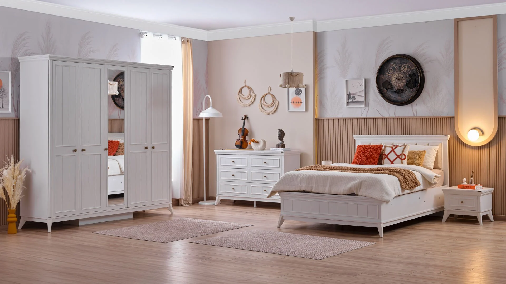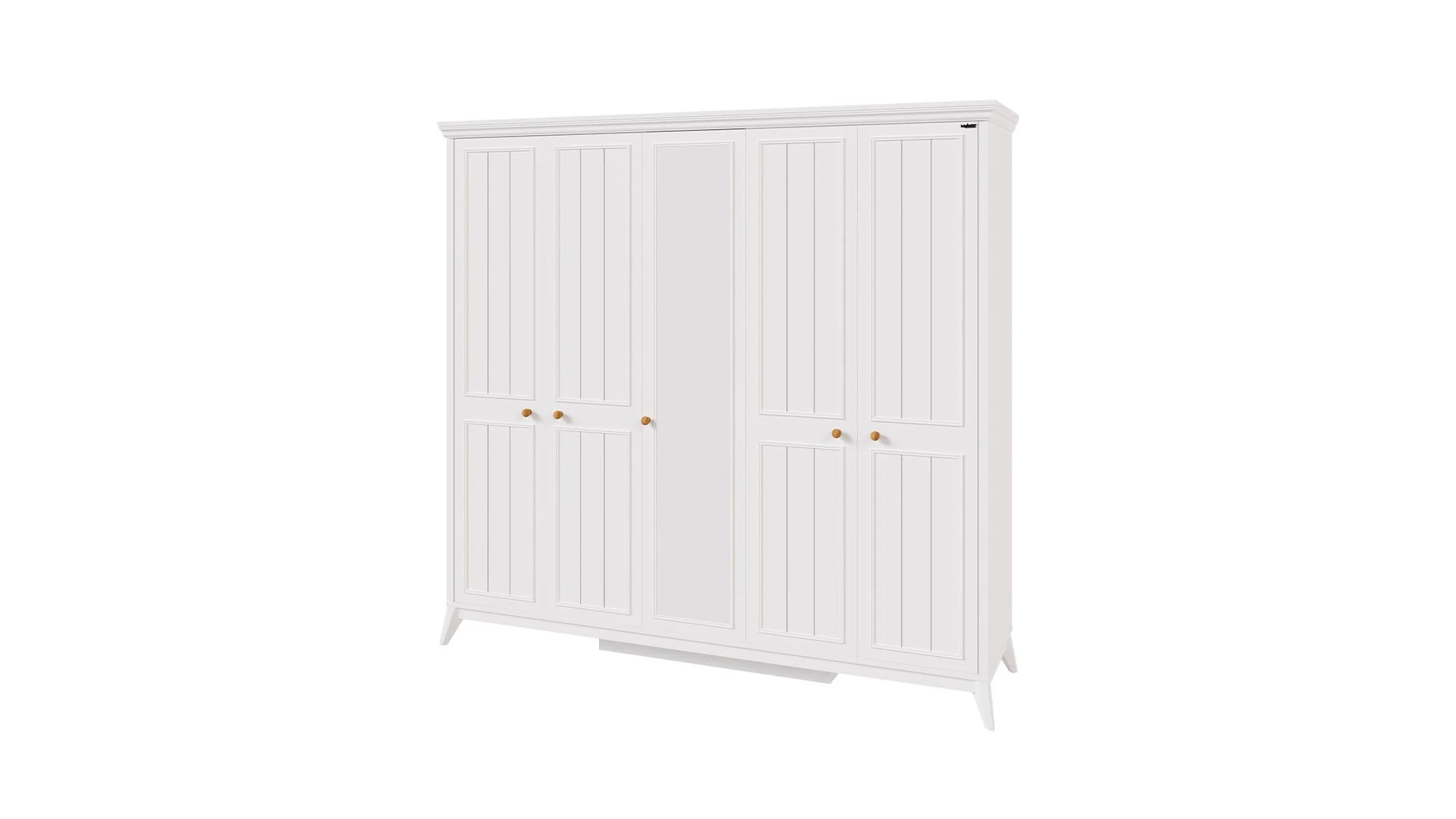 Η πεντάφυλλη ντουλάπα Gloria συνδυάζει λειτουργικότητα και αισθητική, ιδανική για την οργάνωση κάθε χώρου.
