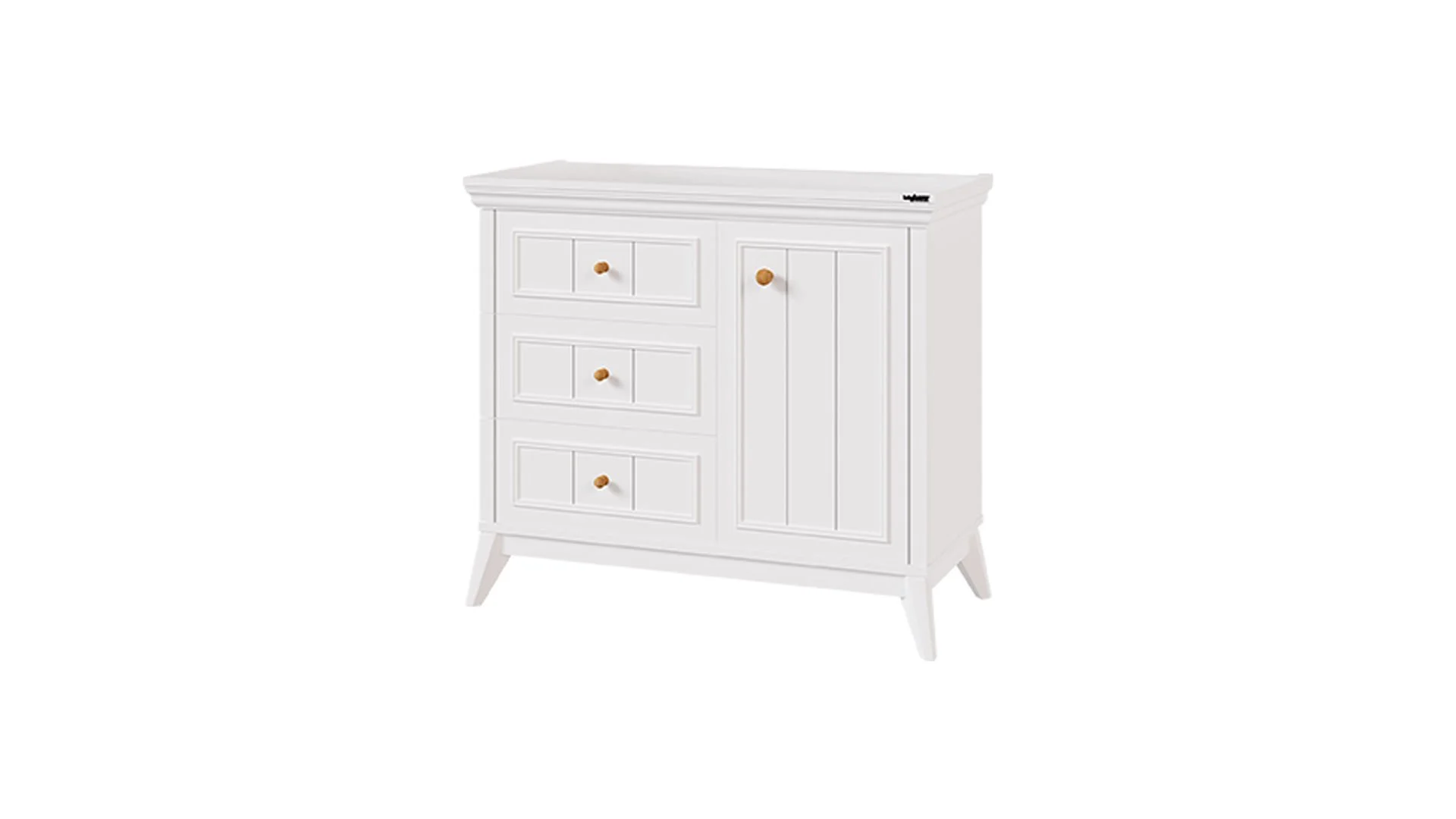 Συρταριέρα με ντουλάπι Gloria αποτελεί μια κομψή και λειτουργική επιλογή για την οργάνωση του χώρου σας. Διαθέτει τρία ευρύχωρα συρτάρια και ένα ντουλάπι σε άσπρο χρώμα, που προσδίδουν μια ρομαντική και μοντέρνα πινελιά. Τα ξύλινα χερούλια ολοκληρώνουν το αισθητικό αποτέλεσμα, ενώ η στιβαρή της κατασκευή εξασφαλίζει αντοχή και μακροχρόνια χρήση. Ιδανική για υπνοδωμάτια ή χώρους με ανάγκη αποθήκευσης και στυλ.