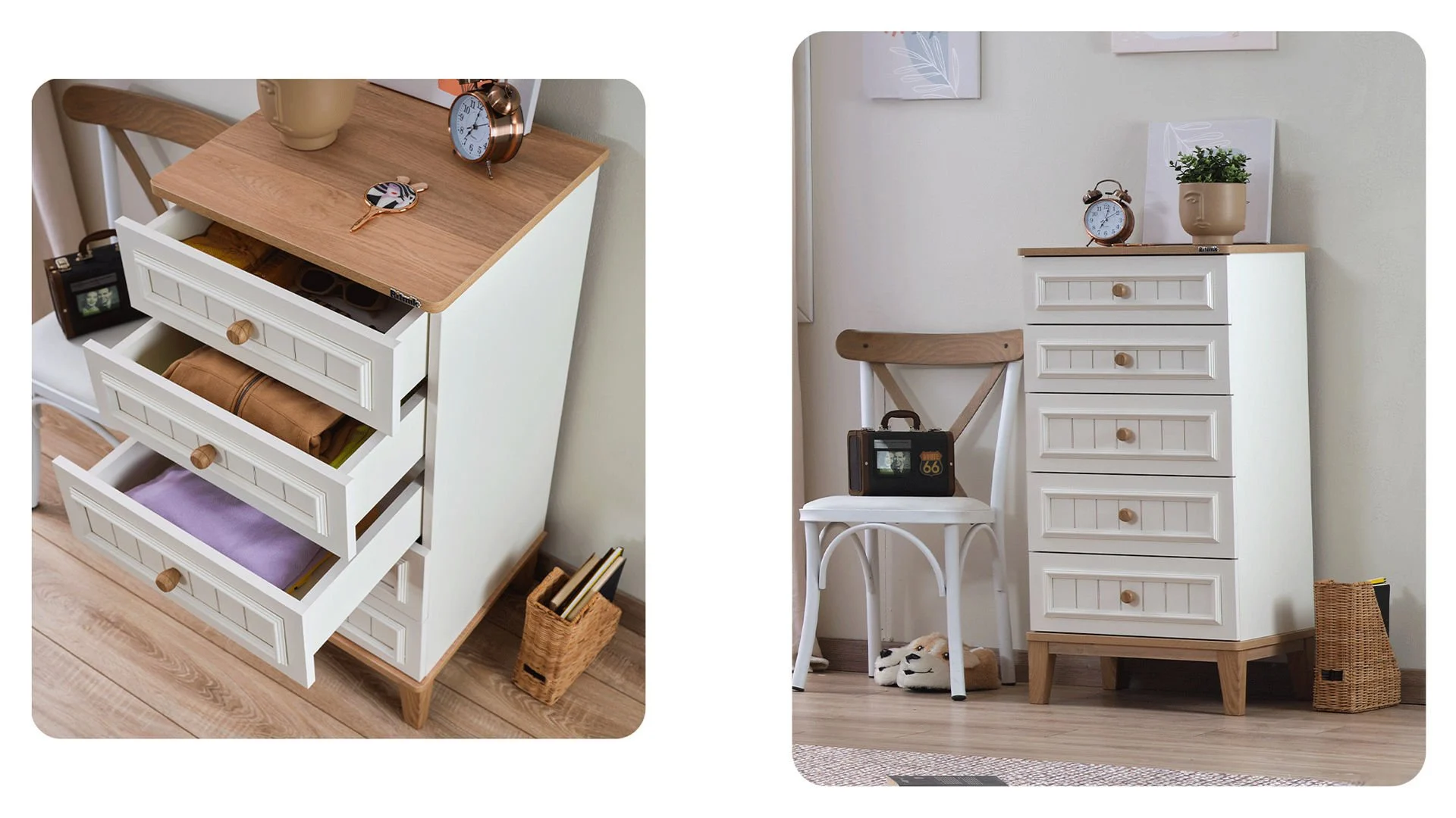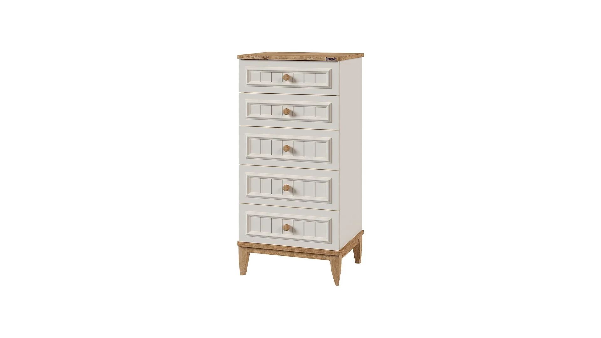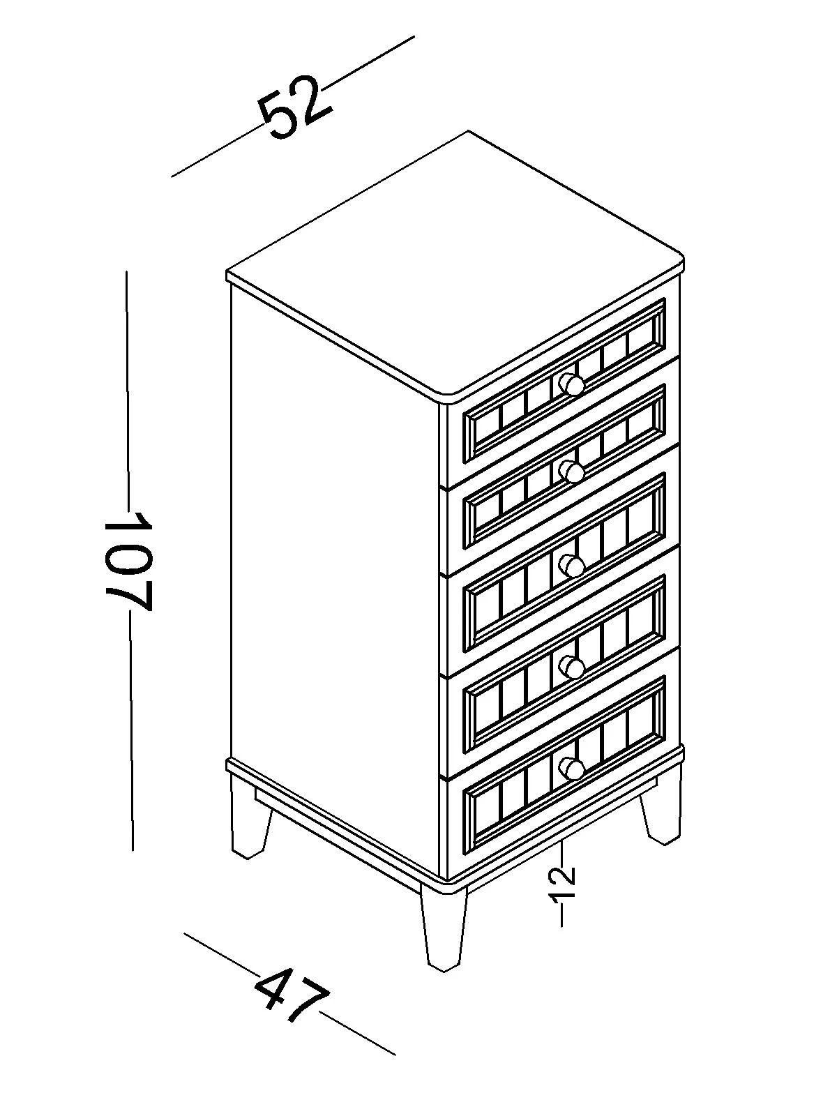 Διαθέτει πέντε ευρύχωρα συρτάρια σε άσπρο χρώμα , που προσδίδουν μια ρομαντική και μοντέρνα πινελιά.
