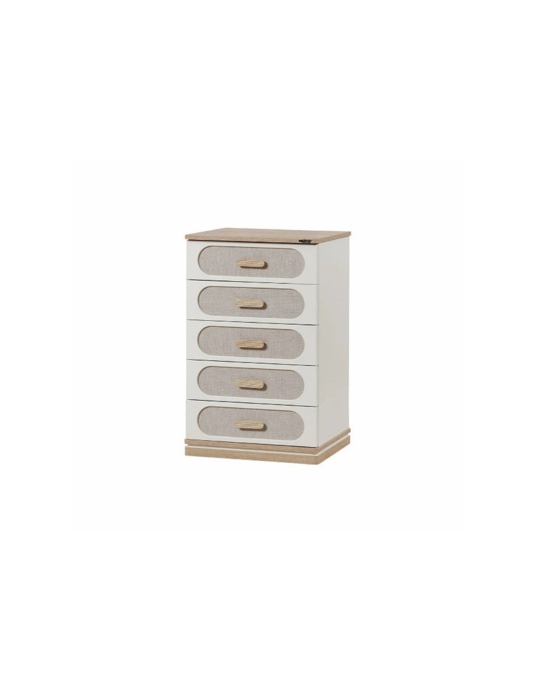 Διαθέτει τέσσερα ευρύχωρα συρτάρια σε διακριτικό κρεμ, που προσδίδουν μια μοντέρνα πινελιά.