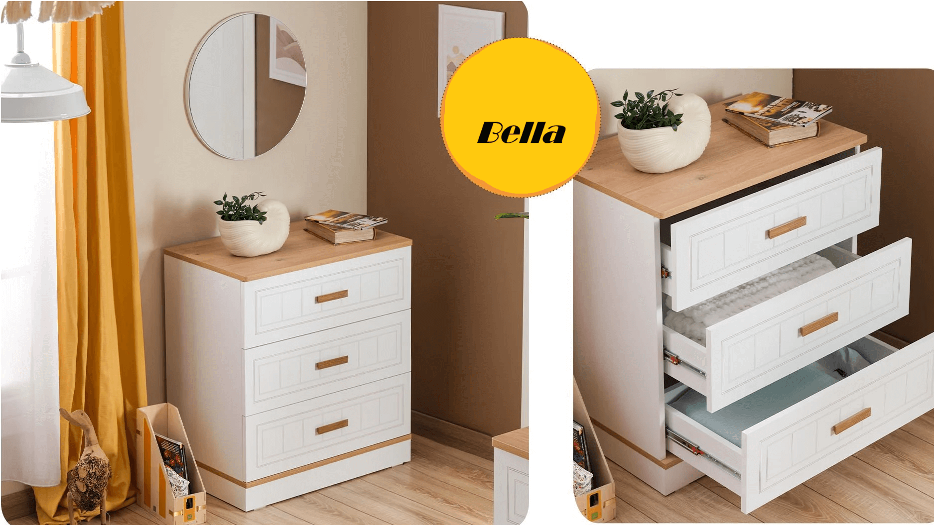 Η συρταριέρα Bella αποτελεί μια κομψή και λειτουργική επιλογή για την οργάνωση του χώρου σας.