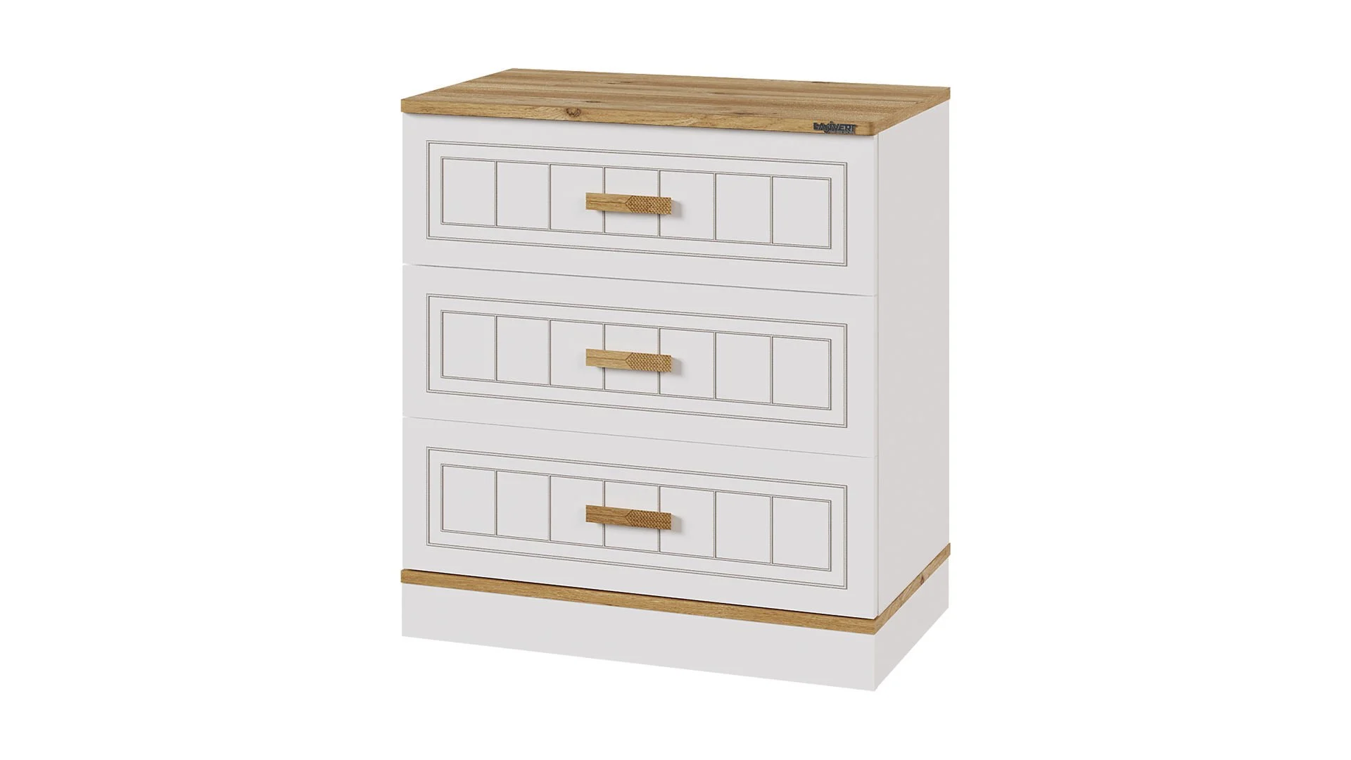 Η συρταριέρα Bella αποτελεί μια κομψή και λειτουργική επιλογή για την οργάνωση του χώρου σας. Διαθέτει τρία ευρύχωρα συρτάρια σε άσπρο χρώμα που προσδίδουν μια ρομαντική και μοντέρνα πινελιά. Τα ξύλινα χερούλια ολοκληρώνουν το αισθητικό αποτέλεσμα, ενώ η στιβαρή της κατασκευή εξασφαλίζει αντοχή και μακροχρόνια χρήση. Ιδανική για υπνοδωμάτια ή χώρους με ανάγκη αποθήκευσης και στυλ.