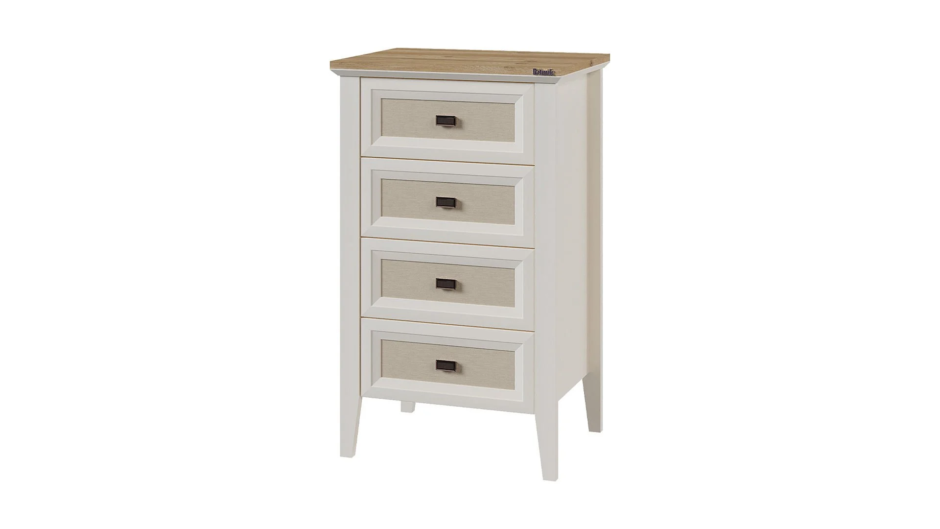 Διαθέτει τέσσερα ευρύχωρα συρτάρια σε κρεμ χρωματισμούς που προσδίδουν μια ρομαντική και μοντέρνα πινελιά.