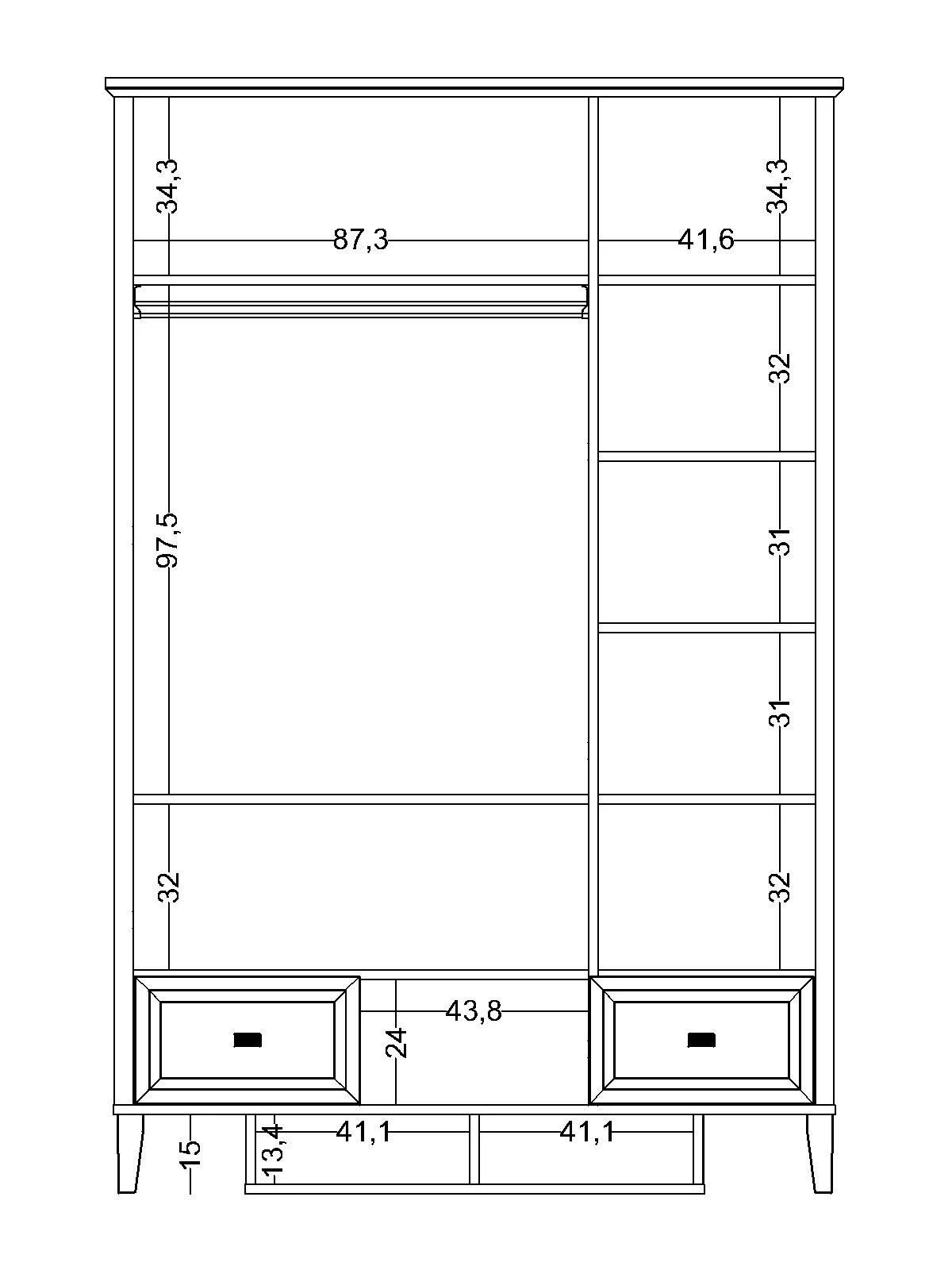 Με ευρύχωρους αποθηκευτικούς χώρους, κρεμάστρες, ράφια και δύο συρτάρια στη βάση, προσφέρει πρακτικότητα για ρούχα και αξεσουάρ.